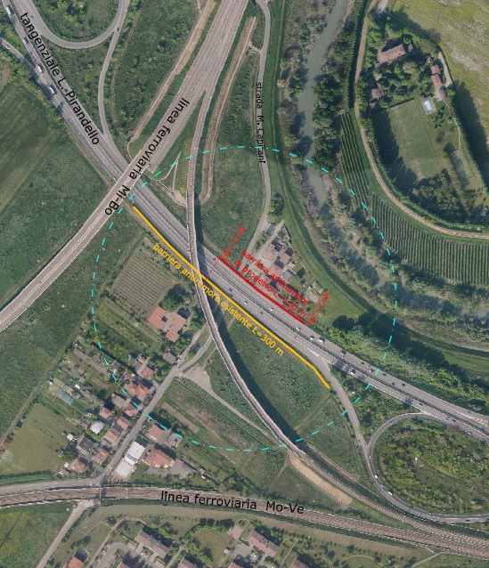 Il progetto è stato redatto in base alla Valutazione di impatto acustico eseguita nell’ambito del progetto esecutivo per il raddoppio della linea ferroviaria Modena-Soliera e la rilocazione della linea storica Milano-Bologna in territorio modenese.