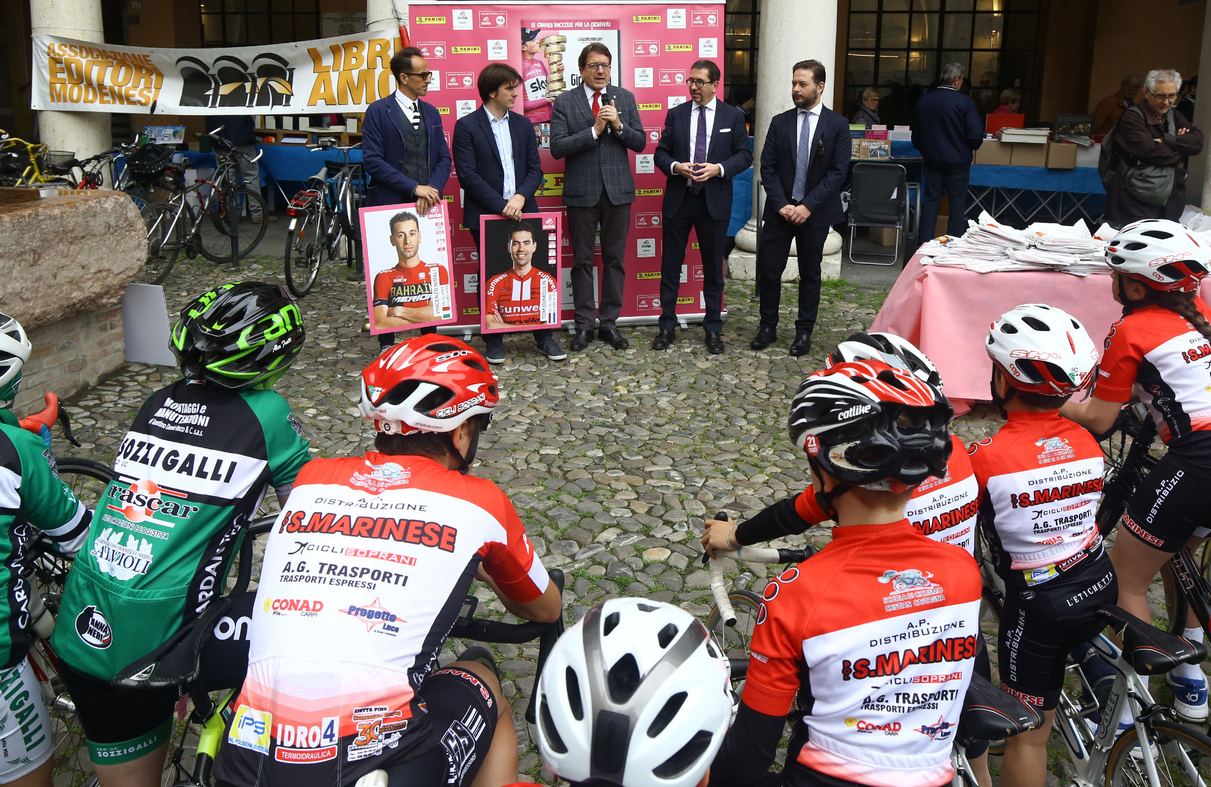 Insieme alla “figurona” della Ghirlandina sono state consegnate, a Fabio Galvani, vice-presidente di Modenamoremio, anche 22 maxi-figurine con le immagini dei capitani delle squadre del Giro, tratte dalla collezione, che saranno esposte in altrettanti negozi del centro storico. Le figurine si potranno quindi ammirare nelle vetrine di Sosta emiliana, Gastronomia Saporiamo, Rucola e stracchino, Malù, Officina XX Settembre e Il giusto gusto in piazza XX Settembre; Hombre e Dress in corso Duomo; Pietri store in piazza Torre; Ottici Galvani, Martinelli, bar Solmi, Dugoni calzature, Maison livre in via Emilia Centro; Impression Dugoni in largo Porta Bologna; bar Molinari in via San Carlo; Pizzaltaglio, Dischinpiazza e ristorante Uva d’oro in piazza Mazzini, Pizzaltaglio in via del Carmine e Bassi gioielli in via Castellaro.