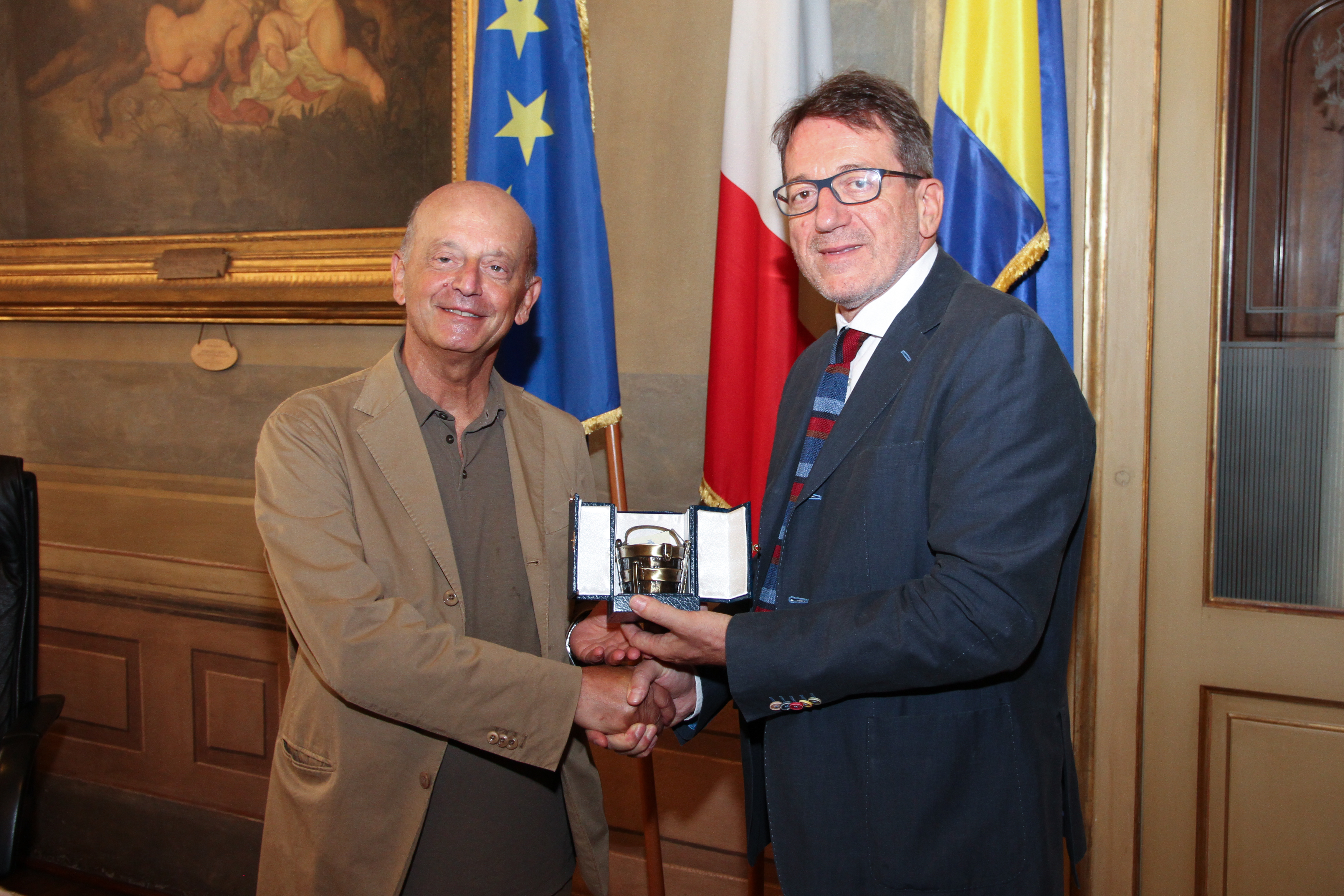 Il sindaco ha voluto porgere un saluto e un ringraziamento particolare al dirigente della Prefettura di Modena Bruno Scognamillo prossimo al pensionamento, consegnandogli anche una riproduzione della Secchia rapita.