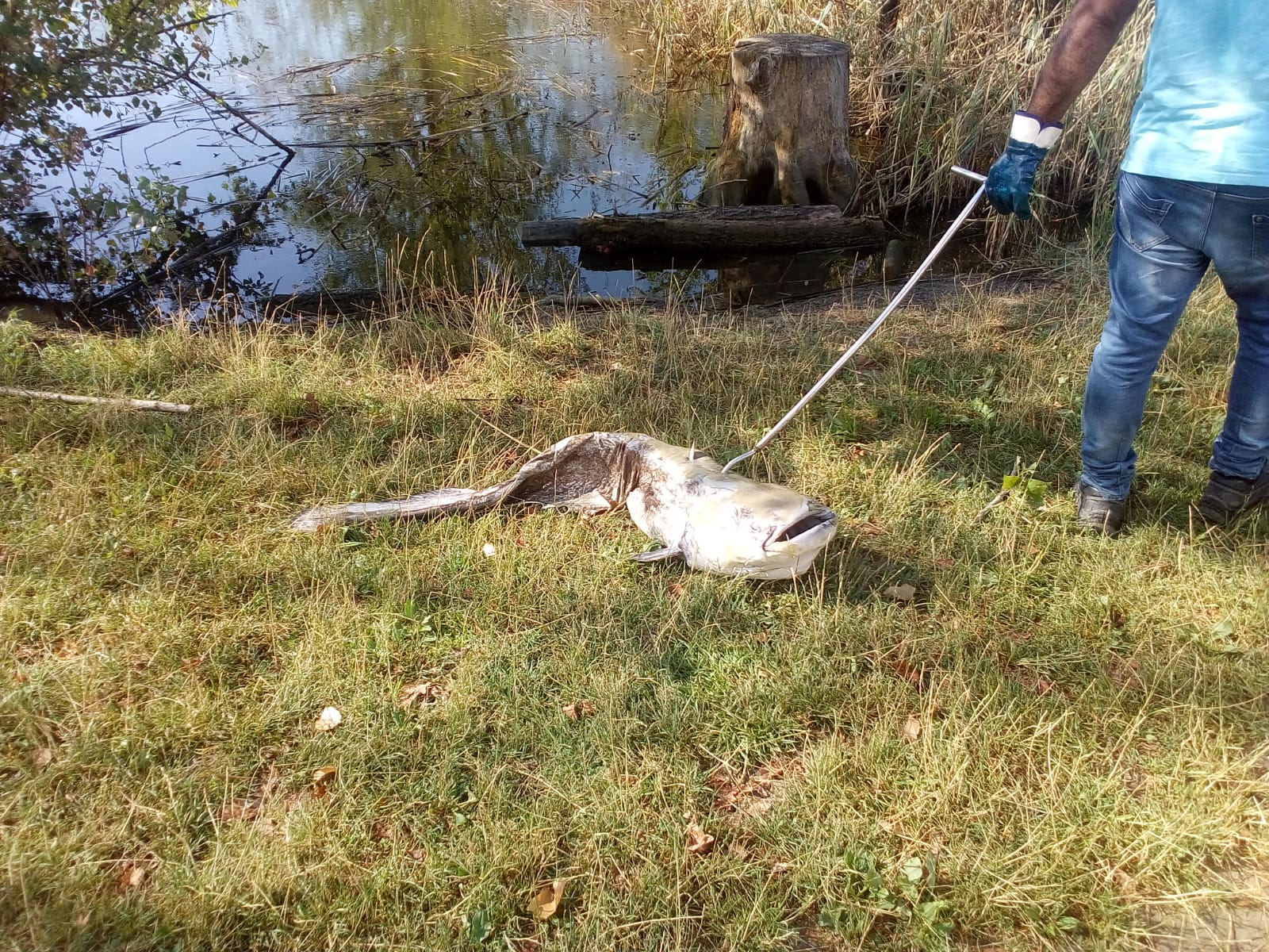 C’era anche un siluro di circa due metri tra i pesci del laghetto del parco Ferrari vittime delle alte temperature di questi giorni che hanno contribuito a ridurre l’ossigenazione dell’acqua.