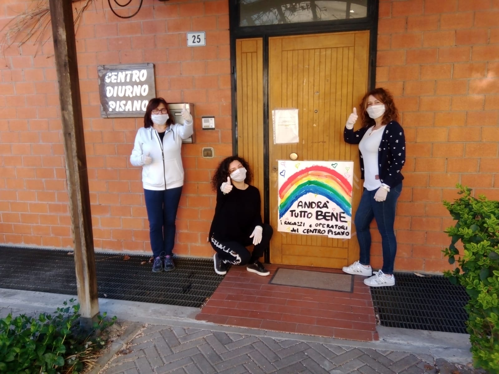L’arcobaleno con la scritta “Andrà tutto bene” lo hanno disegnato insieme, operatori e disabili del Centro diurno di via Pisano, quando la struttura gestita dal Comune non aveva ancora dovuto sospendere l’attività in osservanza delle disposizioni regionali; obiettivo: lanciare un messaggio di speranza ben visibile a tutti coloro che si trovino a passare davanti alla loro seconda casa.