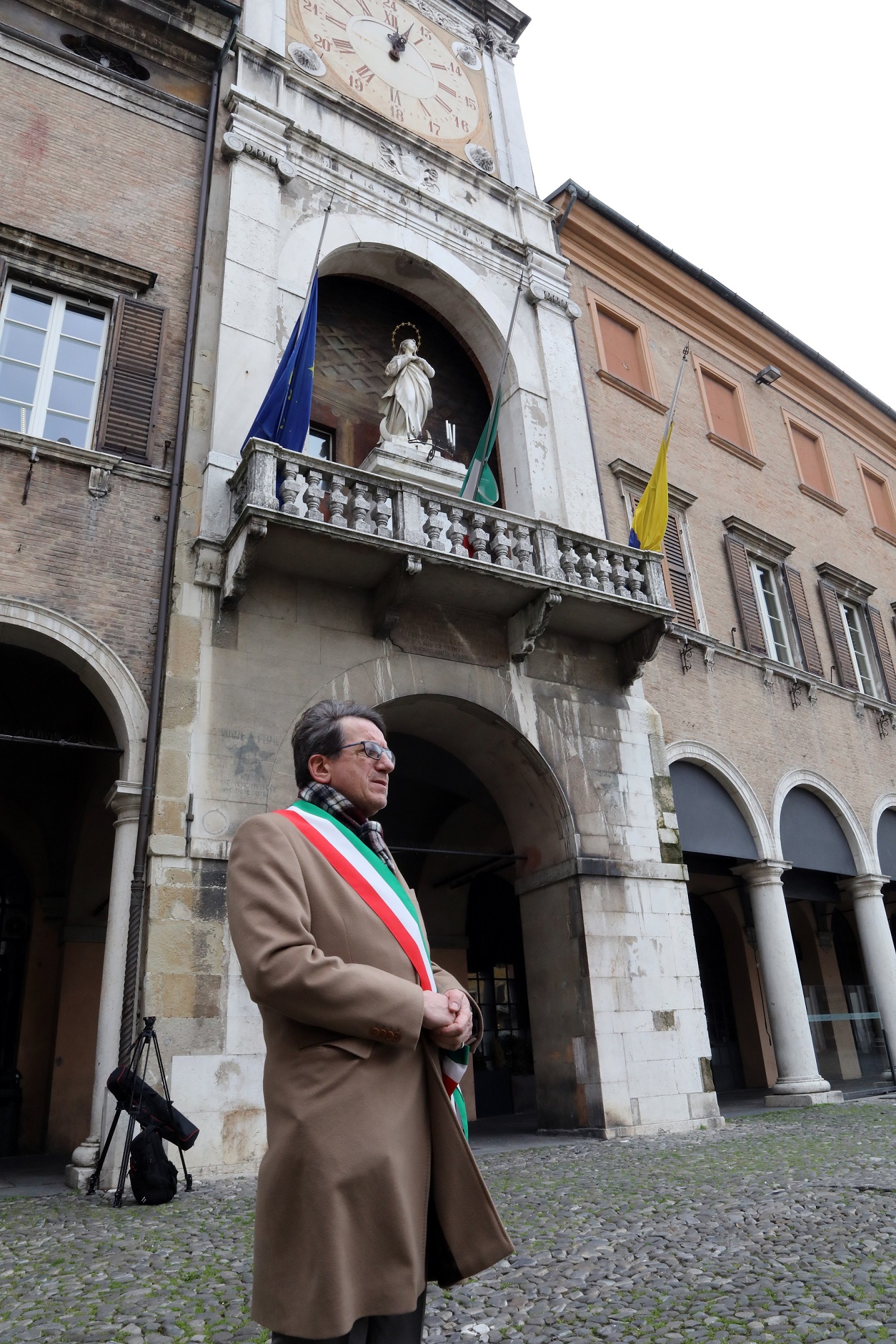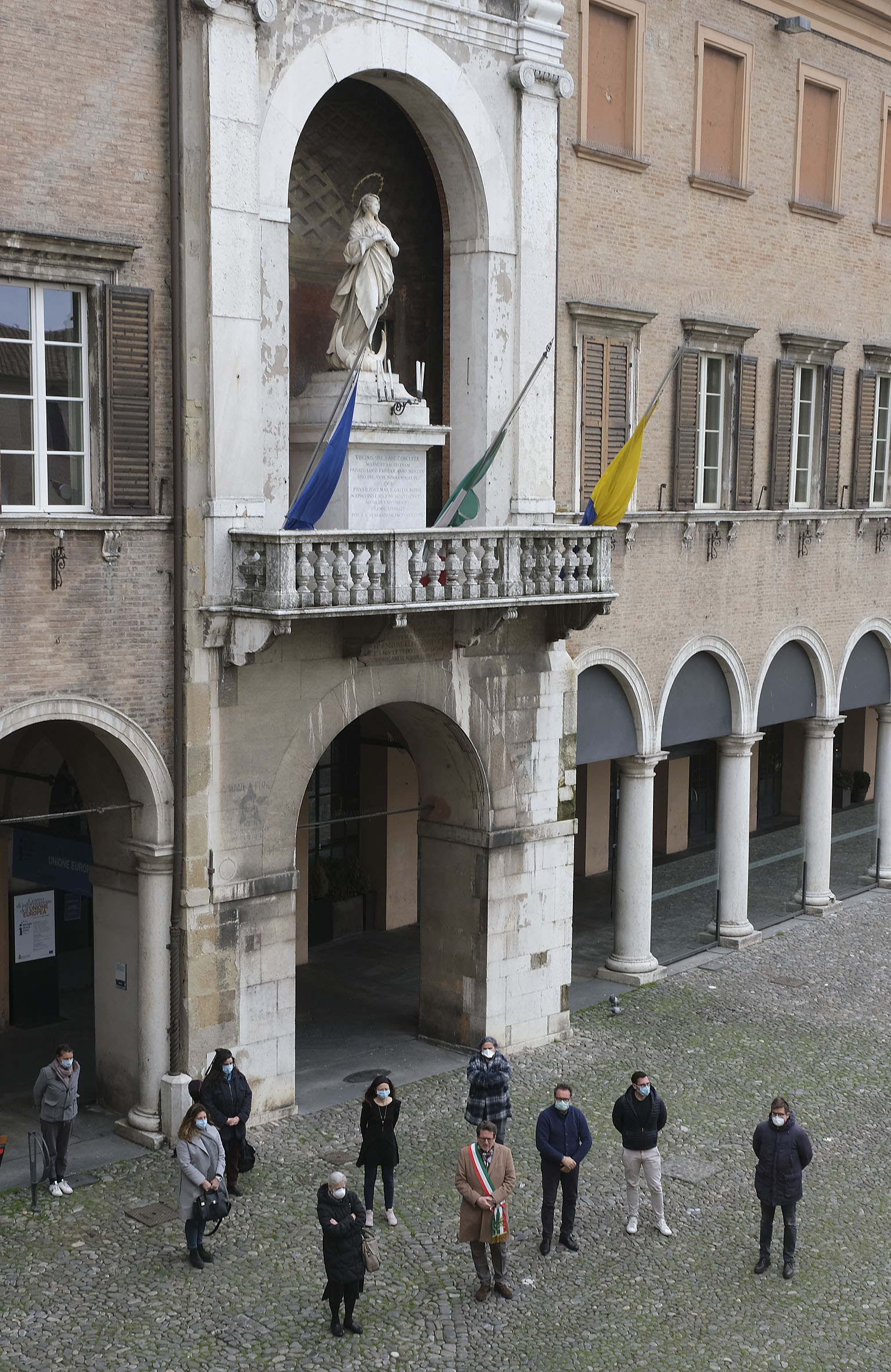 “Per ricordare le vittime del Coronavirus, per onorare il sacrificio e l’impegno degli operatori sanitari, per abbracciare idealmente tutti, per essere di sostegno l’uno all’altro, come sappiamo fare noi sindaci, uniti, in questo momento, come proposto da Anci, in un gesto simbolico ma concreto”. Con queste parole, martedì 31 marzo, alle 12 in punto, il sindaco Gian Carlo Muzzarelli è sceso in piazza Grande, con la fascia tricolore, insieme all’intera giunta, per osservare un minuto di silenzio davanti alle bandiere a mezz’asta ed esprimere il lutto e la vicinanza alle famiglie delle vittime a nome di tutta la cittadinanza.
