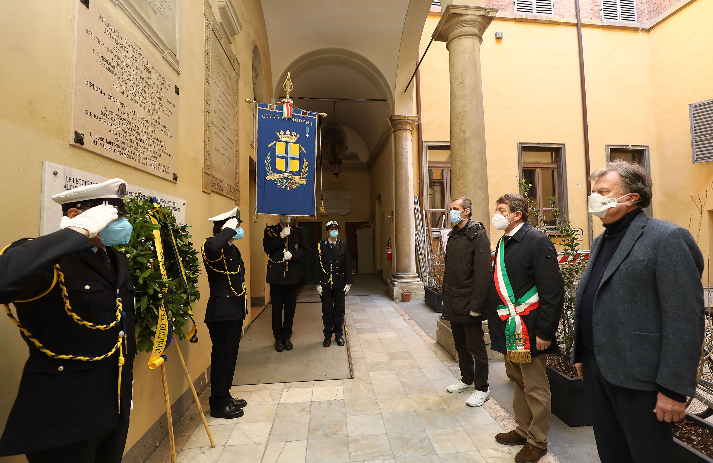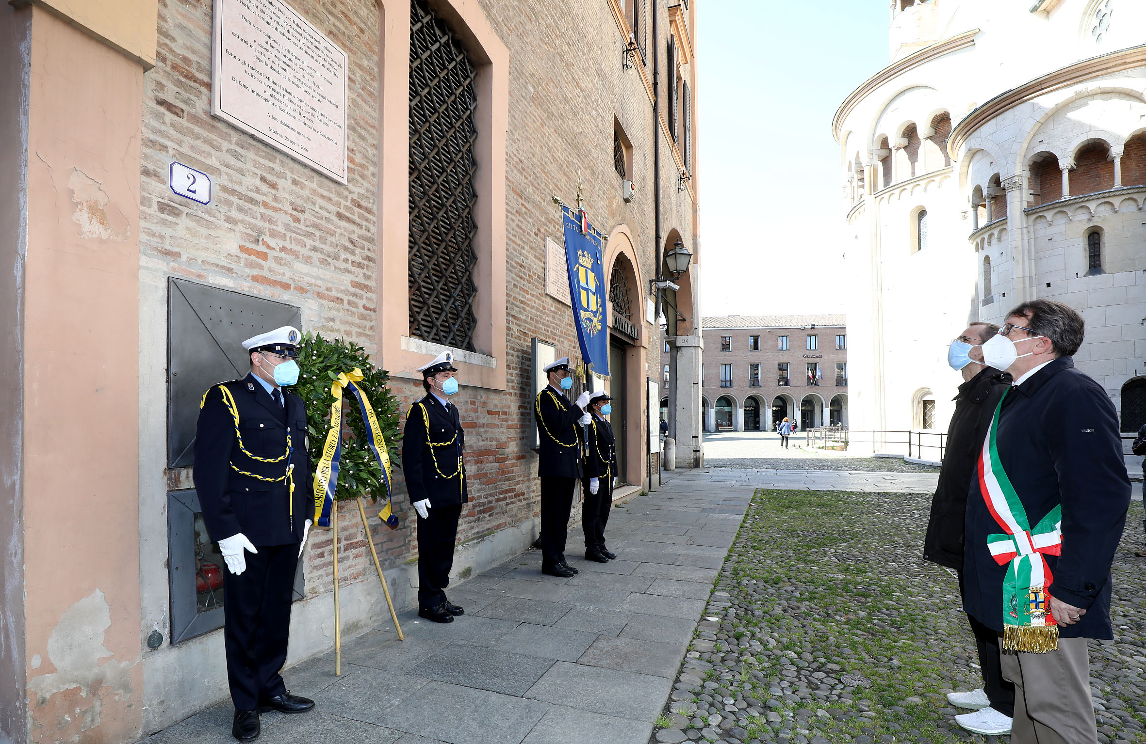 Il programma delle commemorazioni è iniziato alle 9.30 con la deposizione di una corona di fiori al Famedio del cimitero di San Cataldo. Quindi alle 10 il sindaco e il presidente del Consiglio comunale si sono spostati come, da tradizione, al Sacrario della Ghirlandina di piazza Torre e nell’adiacente lapide a ricordo degli ex internati militari. Il percorso è proseguito alle 10.15 alla lapide della Medaglia d’oro alla Città di Modena, sullo scalone del Palazzo comunale in piazza Grande. Infine alle 10.30 è stata deposta una corona alla lapide in ricordo di Mario Allegretti, Medaglia d’oro al valor militare, nell’atrio dell’Ateneo in via Università alla presenza anche del rettore di Unimore, Carlo Adolfo Porro.