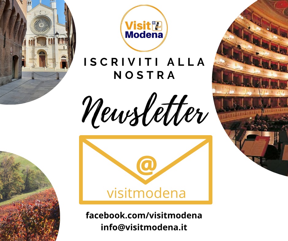 Anche i cittadini possono iscriversi liberamente e gratuitamente alla Newsletter di Visit Modena (www.visitmodena.it). L’iscrizione può essere effettuata dalla pagina facebook.com/visitmodena oppure scrivendo una mail (a info@visitmodena.it). La newsletter viene inviata a cadenza settimanale. I contenuti sono curati dallo staff dell’Ufficio Informazione e accoglienza turistica del Comune di Modena (Iat) in gestione a Modenatur.