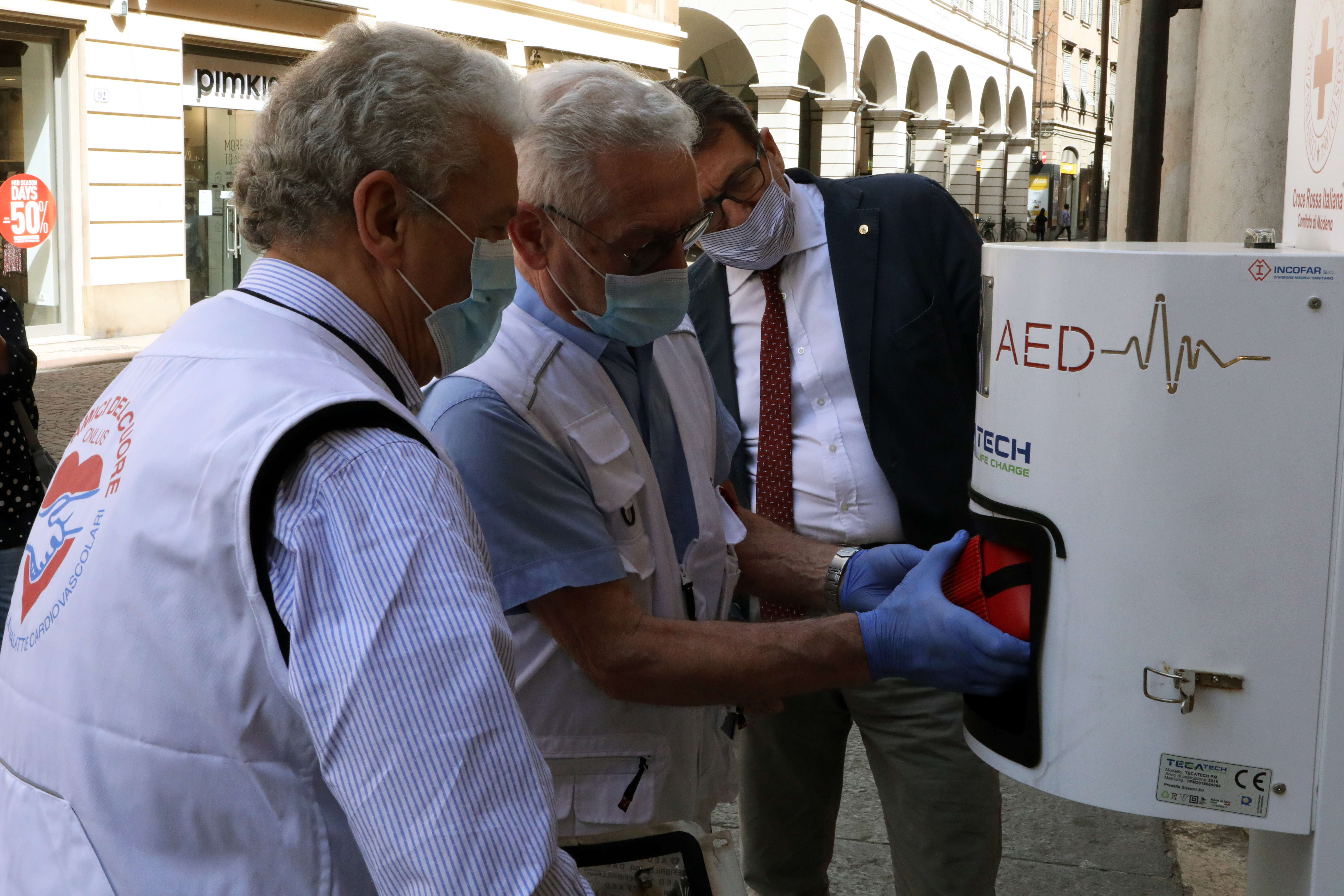 Nella colonnina presente nei pressi del civico 145 di via Emilia centro, all’esterno delle colonne del portico, era presente un defibrillatore dal 26 novembre 2018, quando era stato installato grazie alla donazione della Croce Rossa Italiana. Il dispositivo è rimasto attivo fino alla notte del 12 maggio, quando è stato sottratto dalla sua sede, probabilmente in un atto di vandalismo. A seguito del furto, il giorno successivo alcuni cittadini hanno avviato una campagna di donazioni su Facebook, istituendo la pagina “Riacquistiamo il defibrillatore di via Emilia centro”, che in pochi giorni ha raccolto oltre 250 adesioni.