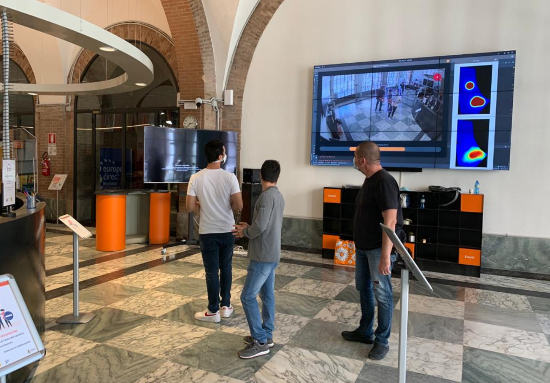 Il progetto denominato “Inter-Homines”, messo a punto dall’Università di Modena e Reggio Emilia e in particolare dalla professoressa Rita Cucchiara, direttrice del Laboratorio nazionale di intelligenza artificiale, assieme a un team di professori e ricercatori, viene testato in questi giorni nei locali di Piazza Grande dove ci si prepara alla riapertura predisponendo le misure per consentire l’accesso in sicurezza sia per il pubblico che per gli operatori.