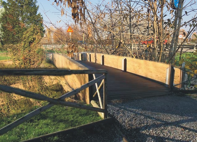 L’intervento prevede la demolizione del ponte ciclopedonale esistente e la sostituzione con una struttura in legno e acciaio (di circa 10 x 2 metri), posta ad una quota tale da non rappresentare ostacolo per il deflusso delle acque. I lavori procederanno con la realizzazione delle opere di fondazione propedeutiche alla nuova infrastruttura e proseguiranno con la demolizione del manufatto precedente e la posa e installazione del nuovo ponte.