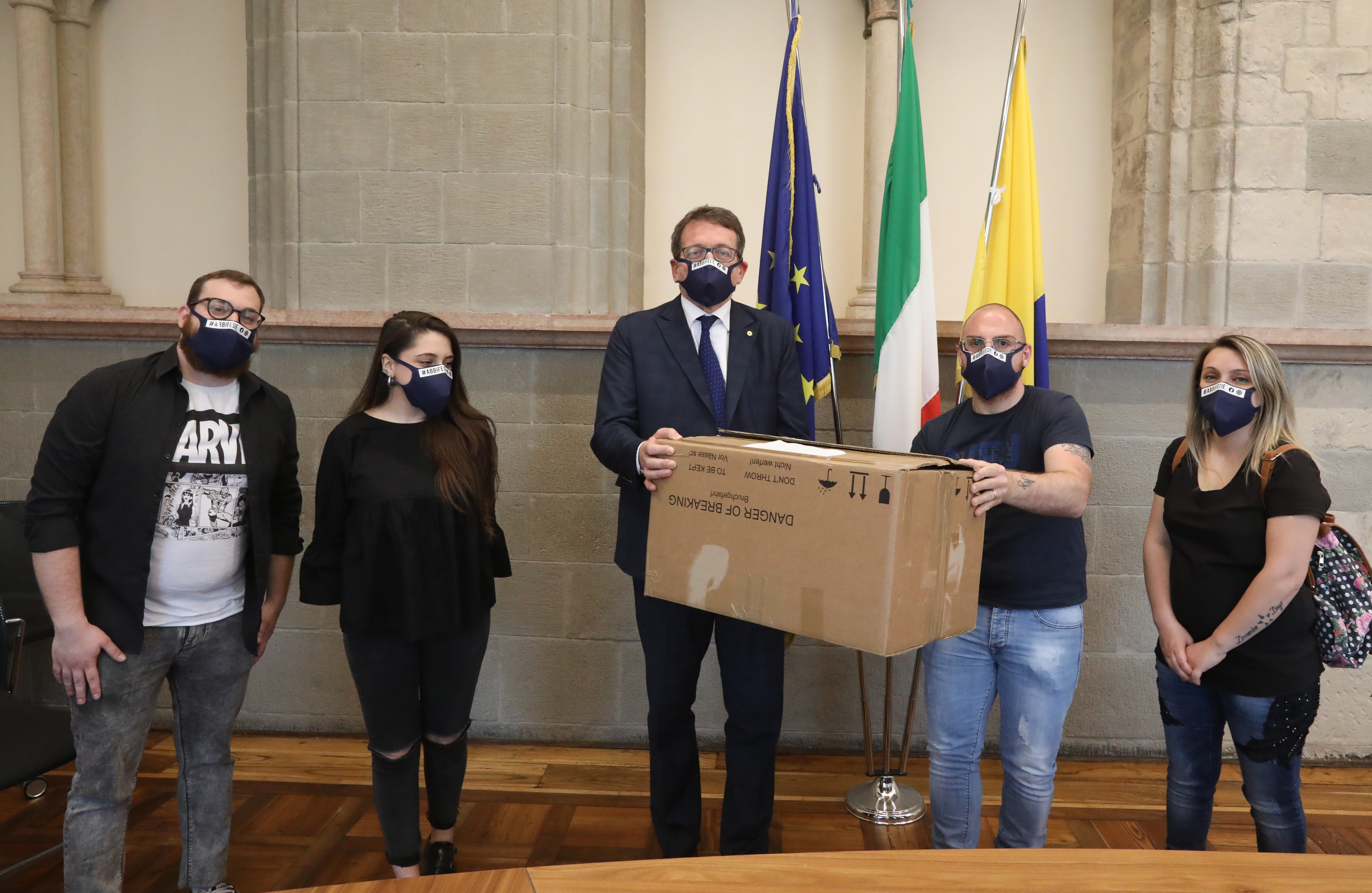 “Grazie per il vostro impegno, è importante che i giovani siano consapevoli del periodo che stiamo attraversando”. Lo ha affermato il sindaco di Modena Gian Carlo Muzzarelli accogliendo in Municipio, nel pomeriggio di venerdì 22 maggio, i rappresentanti dell’associazione “Missione cristiana libertà” che ha donato 500 mascherine al Comune, sostenendo con questo gesto di beneficenza l’ente nelle attività messe in campo per far fronte all’emergenza sanitaria. Si tratta di dispositivi di sicurezza del tipo “tnt 300”, quindi tessuto lavabile, realizzati in maniera artigianale dai volontari dell’associazione e imbustati a coppie.