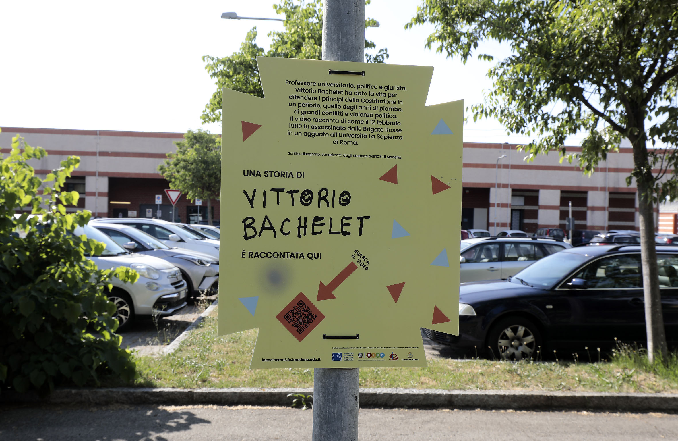 C’è anche la storia di Vittorio Bachelet, il giurista, politico e docente universitario assassinato quarant’anni fa dalle Brigate Rosse, nel progetto di legalità che l’Istituto comprensivo 3 di Modena ha dedicato alle vittime del terrorismo e delle mafie, realizzando una serie di video pubblicati online e di cartelli “interattivi” installati sulle vie a loro intitolate. Sbarca sul web oggi, sabato 9 maggio, proprio nel giorno dedicato alle vittime del terrorismo, l’iniziativa multimediale “Idea Cinema 3” delle scuole Mattarella, Rodari e King, che in un sito internet raccontano l’esperienza creativa e la rendono disponibile per i cittadini (http://ideacinema3.ic3modena.edu.it). La coincidenza con la commemorazione l'ha sottolineata anche il sindaco Gian Carlo Muzzarelli, insieme all’assessora all’Istruzione Grazia Baracchi, nel ringraziare la scuola per la “bella esperienza di civismo sviluppata con i ragazzi”.
