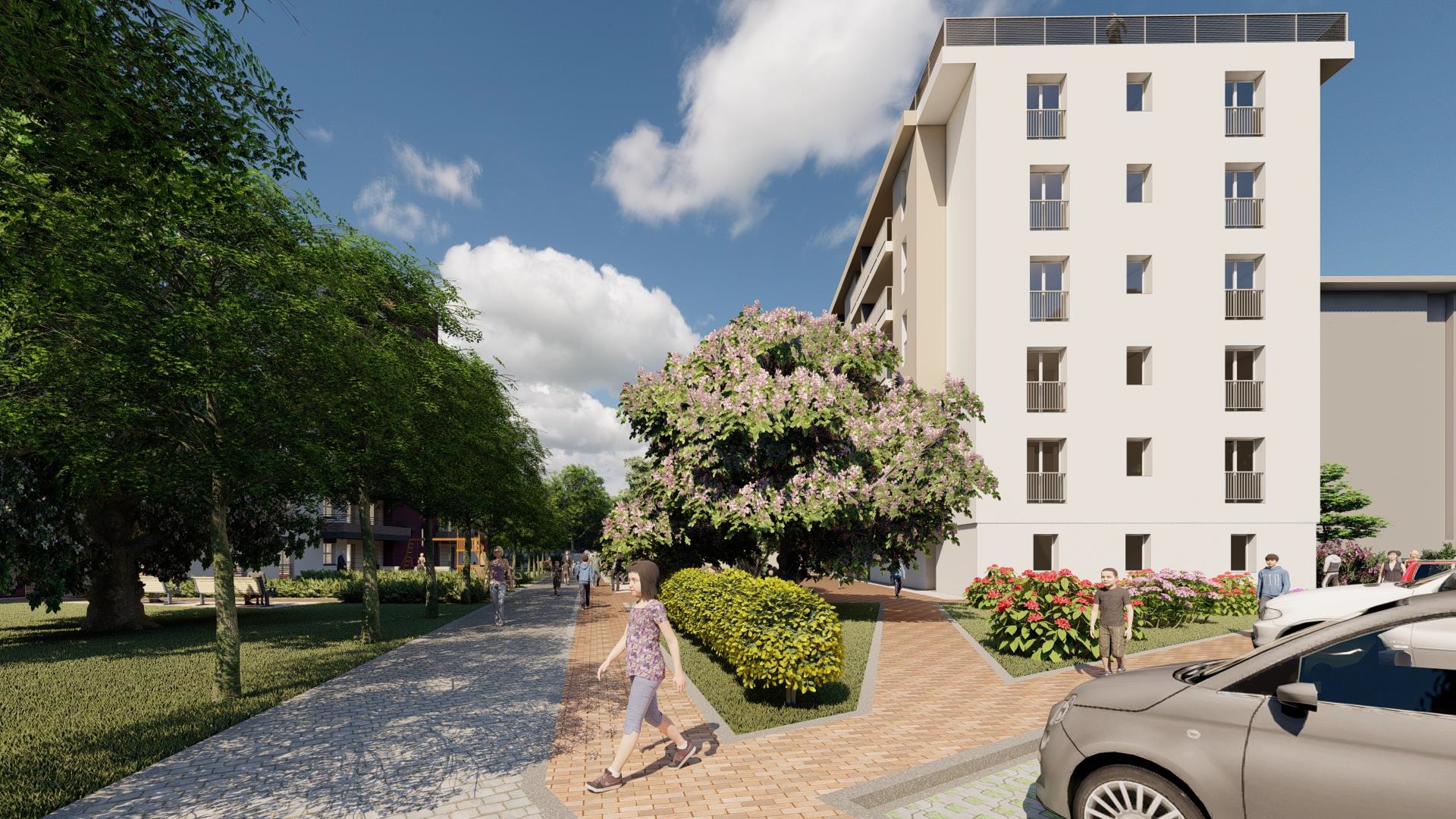 In via Nonantolana, al posto dei tre vetusti fabbricati di Edilizia residenziale pubblica ai civici 221-255, sorgerà un comparto con 74 alloggi Erp ed Ers in due moderne palazzine e al centro sarà allestito uno spazio destinato a verde pertinenziale, dotato di percorsi ciclopedonali che consentiranno di ricucire le aree tra via Nonantolana, il parco XXII Aprile e la scuola Collodi.