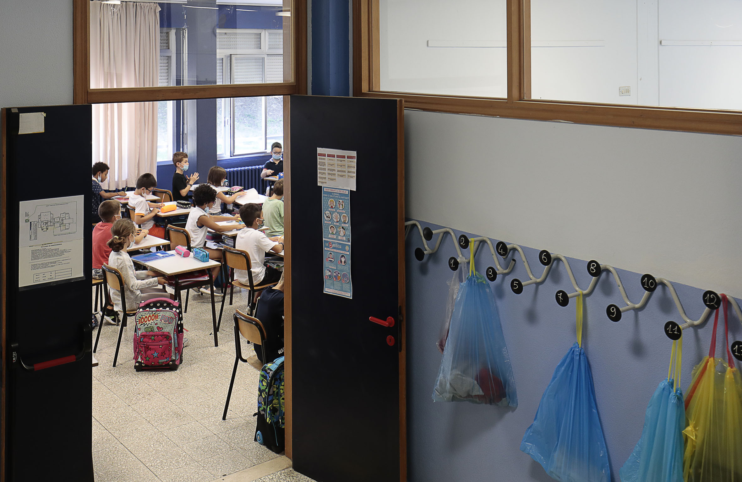 All’interno dell’edificio, circondato da un ampio giardino al Villaggio Zeta, frecce colorate indicano le sedute da non utilizzare, come i percorsi di ingresso e di uscita e fuori da ogni classe, appesi agli attaccapanni, ci sono i sacchetti in cui i bambini hanno riposto le giacche. La maestra della classe più numerosa, poco abituata a vedere i suoi bambini da lontano, si è anche dotata di un piccolo microfono che le permette di farsi sentire bene da tutti i 28 alunni, senza abbassare la mascherina e rinunciare ad avvicinarsi ai banchi.