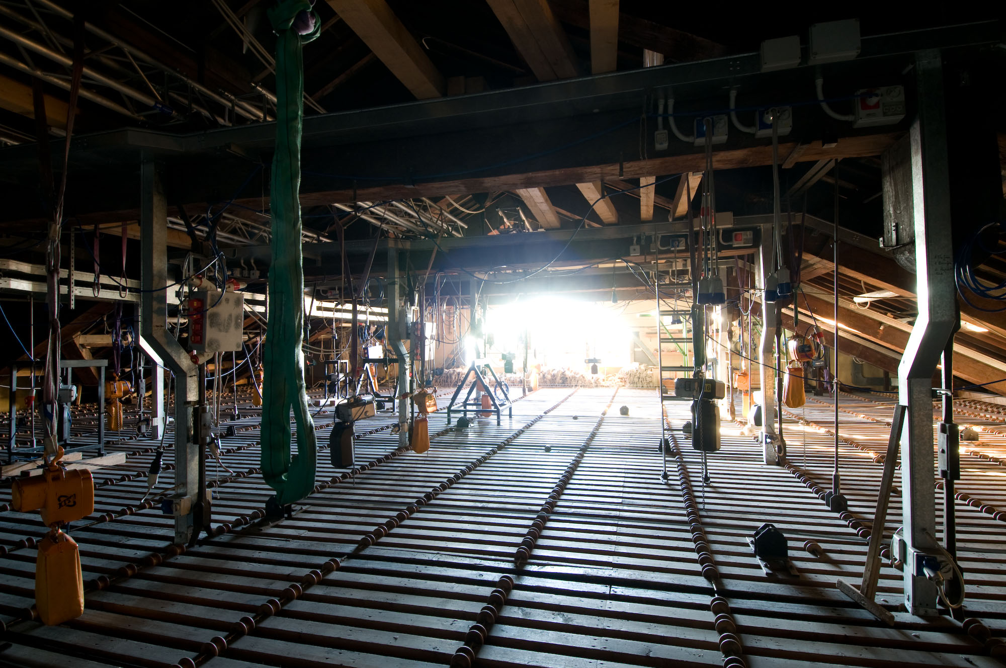La sostituzione della graticcia, ormai usurata, consentirà di aumentare il carico di servizio della stessa: le nuove necessità legate all’allestimento degli spettacoli, che non prevedono più l’utilizzo di scene in tessuto ma spesso in materiali compositi piuttosto pesanti, richiedono infatti un carico di esercizio della graticcia di 600 chilogrammi al metro quadrato. In particolare, saranno sostituiti i travetti attualmente presenti al di sotto della graticcia con travetti in lamellare, in grado di sopportare carichi superiori, e verranno sostituite le attuali stagge in abete con stagge in faggio. Non sono invece oggetto di intervento i puntoni originari né gli elementi che rientrano nel sistema storico della torre scenica.