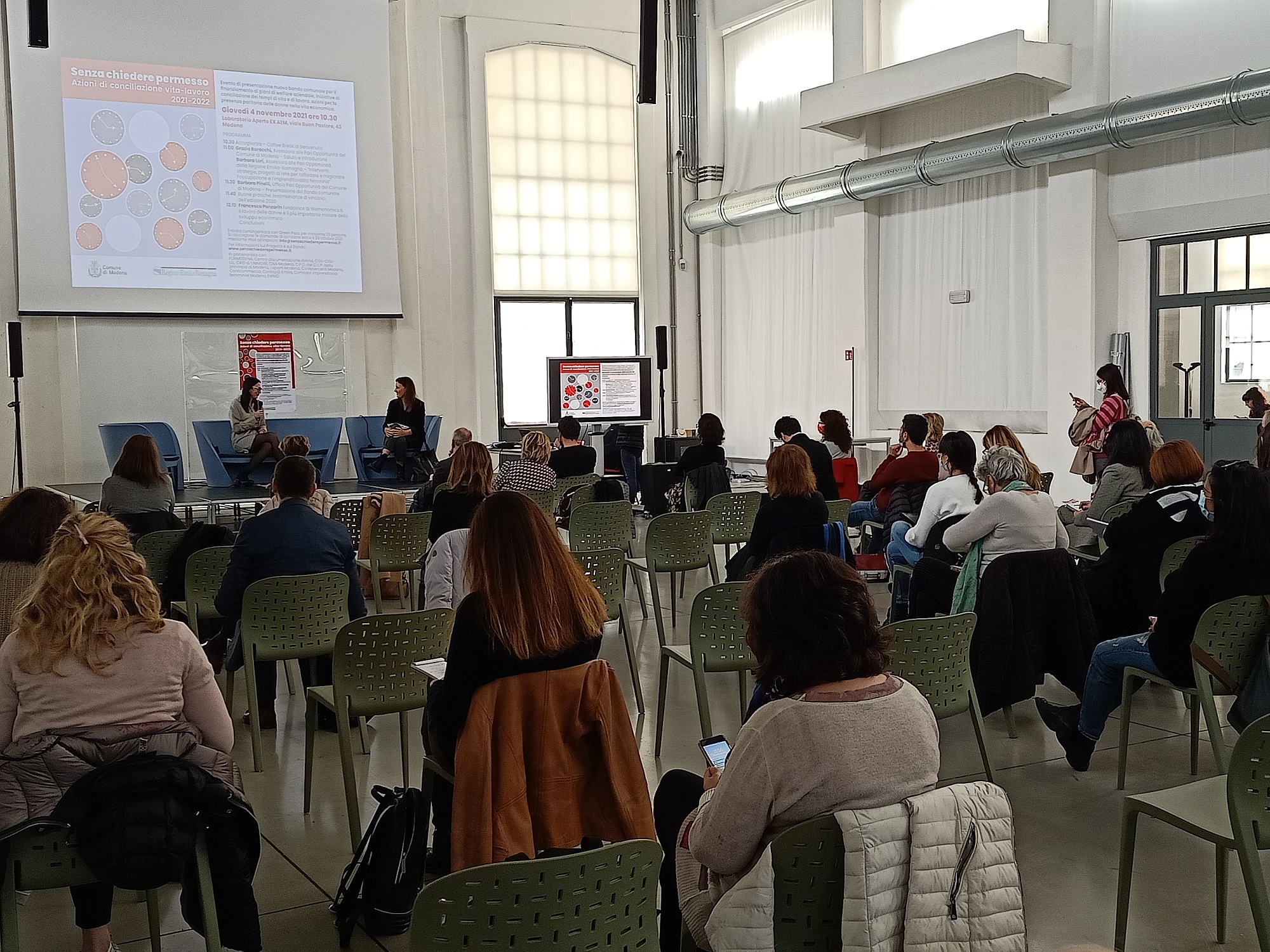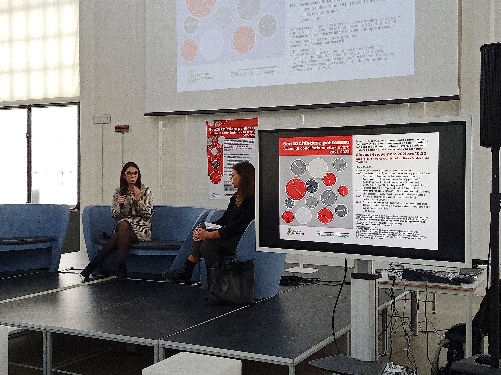 “Senza chiedere permesso”, elaborato dall’assessorato alle Pari opportunità del Comune di Modena dopo una condivisione con le associazioni di categoria, la Cpo, i sindacati e Unimore, ha ottenuto un finanziamento complessivo per la gestione del progetto di 40 mila euro nell’ambito del bando regionale per sostenere la parità delle donne nella vita economica e coinvolge una rete di organismi rappresentativi delle realtà imprenditoriali e del lavoro locale per sviluppare azioni concrete che migliorino le condizioni di lavoro all’interno delle imprese e offrano opportunità di conciliazione anche alle libere professioniste e alle micro imprese.