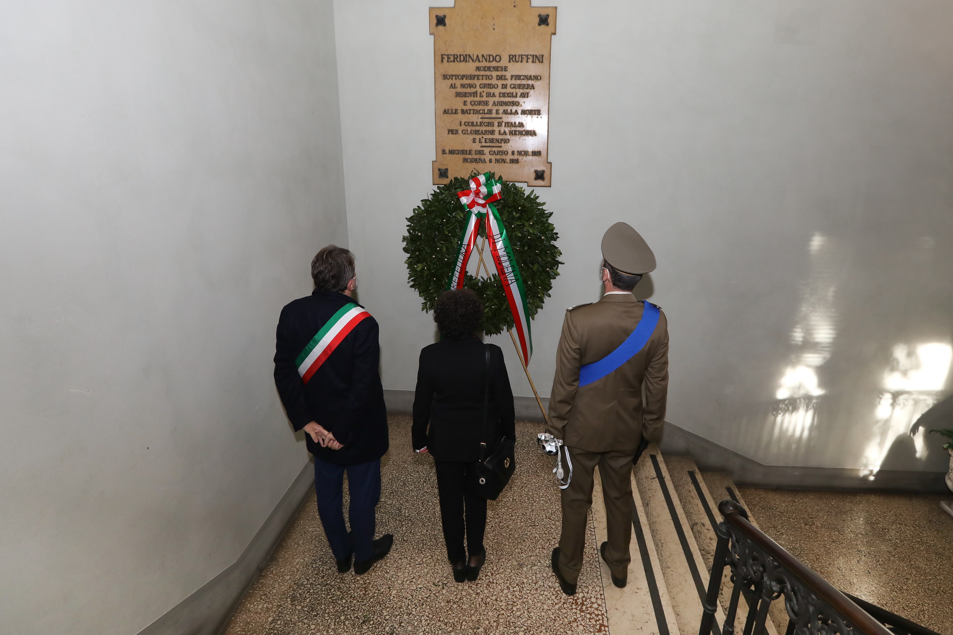 La consegna della pergamena è avvenuta davanti al monumento ai Caduti in viale delle Rimembranze, dove si è svolta, alla presenza delle autorità tra cui anche la prefetta Alessandra Camporota, la cerimonia dell’alzabandiera con la deposizione di una corona di alloro; a seguire è stata deposta una corona ai caduti nella sede della Prefettura e un’altra al Sacrario della Ghirlandina. La cerimonia, che ricorre anche nel 73esimo anniversario della Carta costituzionale, ha rappresentato dunque l’occasione per sottolineare “l’eroismo dei nostri soldati, in larga parte operai e contadini, che combatterono e caddero fino al raggiungimento della vittoria”, recita il manifesto promosso per il 4 novembre dalle istituzioni modenesi, insieme alle associazioni combattentistiche d’arma e partigiane, e per ricordare “l’orgoglio del popolo e dei militari italiani che, con la lotta al nazifascismo, hanno restituito libertà e dignità al Paese”. Rilevando l’importanza “di trasmettere alle giovani generazioni la memoria storica come monito e testimonianza affinché non si ripetano più gli orrori del passato”, la giornata del 4 novembre ha costituito perciò un momento per “manifestare riconoscenza alle forze armate, presidio delle istituzioni repubblicane, e a tutti i nostri militari impegnati nell’adempimento del proprio dovere in Italia e all’estero”.