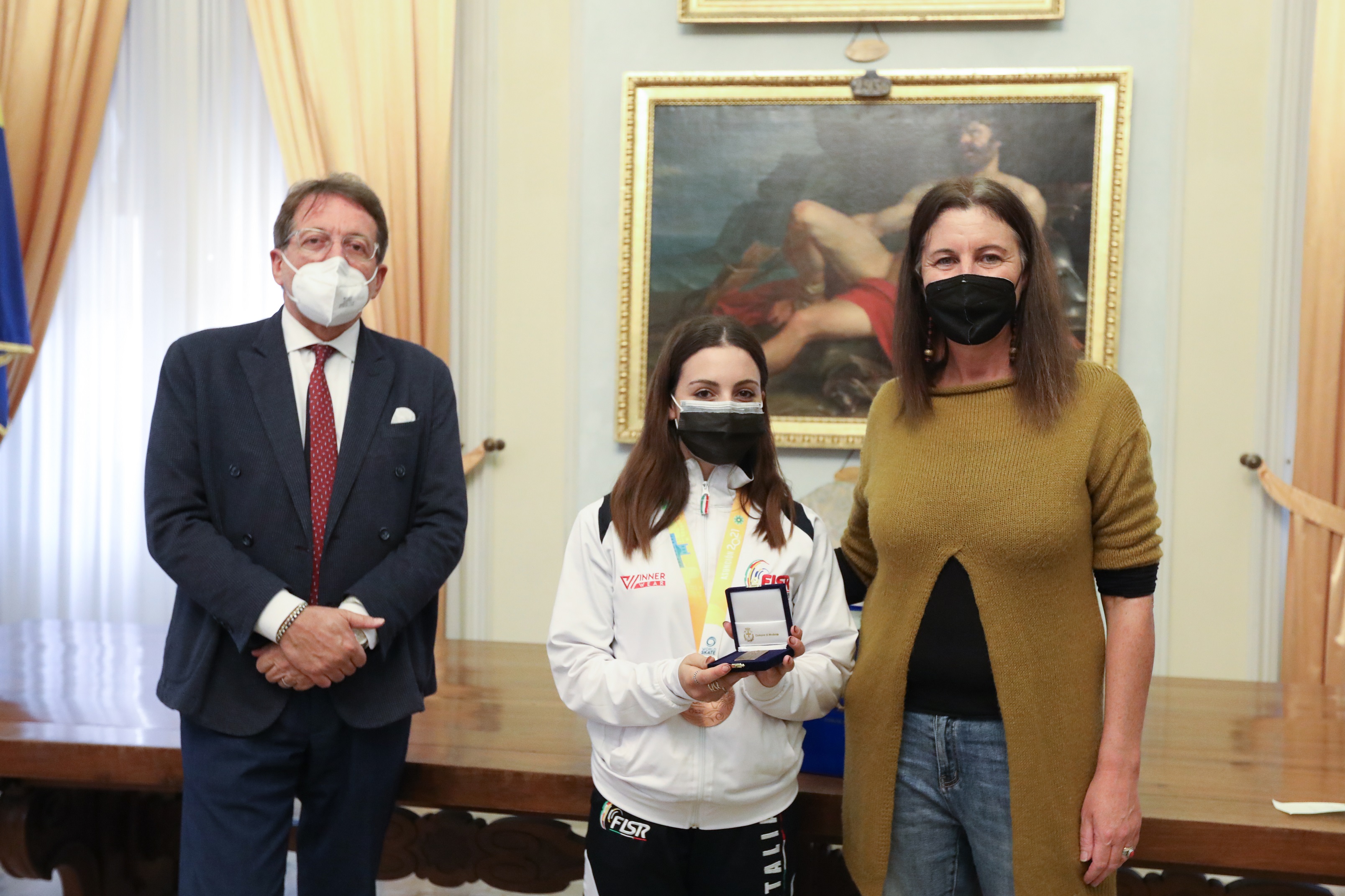 “Anche se eravate dall’altra parte del mondo a gareggiare vi abbiamo seguito con attenzione e soddisfazione”, ha affermato l’assessora Baracchi ricordando inoltre “il ruolo e la presenza delle strutture sul territorio”. Palestre e strutture consentono infatti agli atleti di potersi allenare nel migliore dei modi, elemento essenziale “per raggiungere i risultati e per permettere comunque l’attività sportiva, che costituisce la base da cui emergono poi le vittorie”. Lo sport, ha osservato il sindaco Muzzarelli, “consolida i legami della comunità, allontanando anche il Covid, e quindi gli investimenti sugli impianti contribuiscono a costruire la base per sviluppare quel ‘senso di squadra’ che caratterizza Modena, territorio di cui voi campionesse rappresentate una bella immagine”.