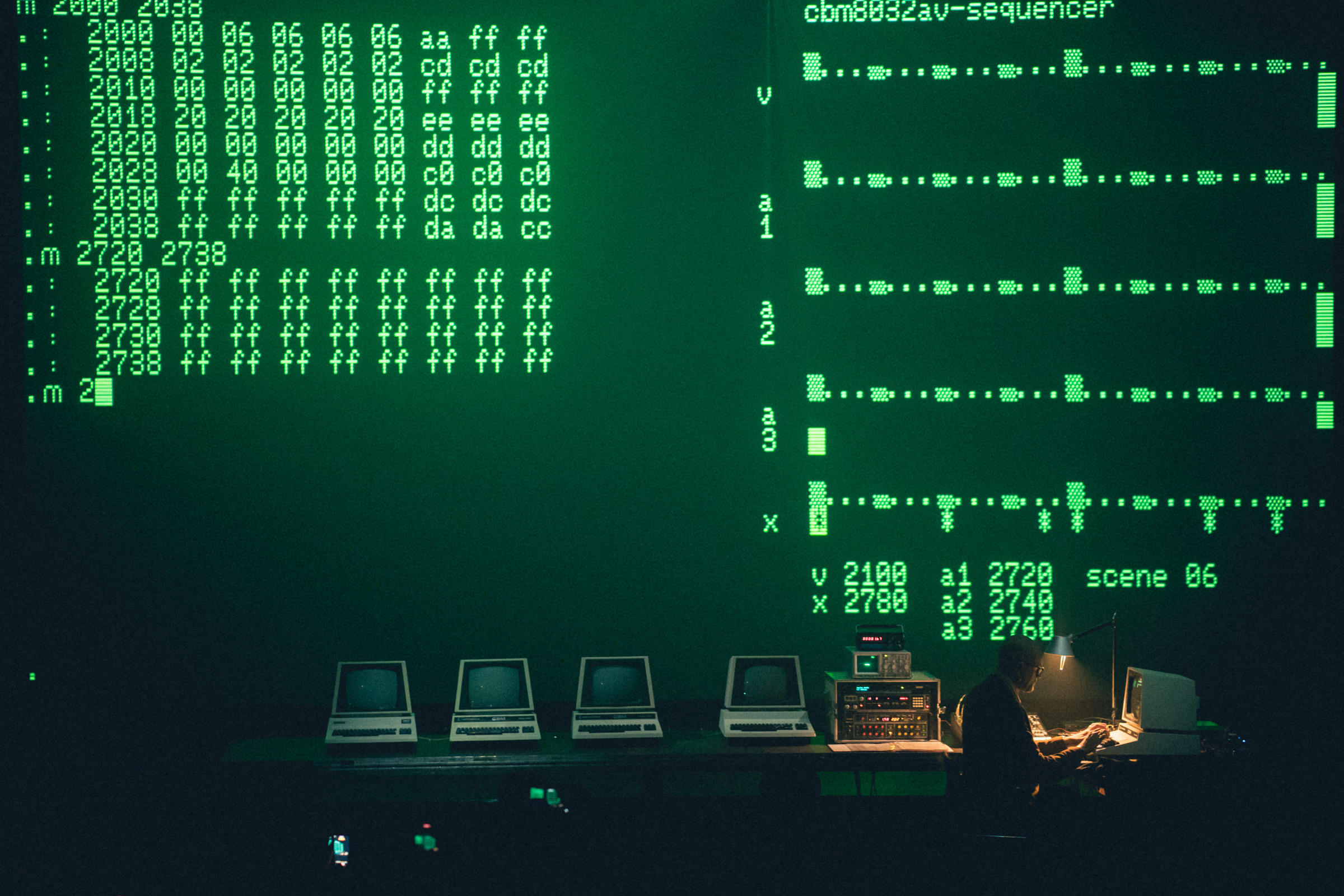 Il 9 dicembre, al cinema Astra, torna Robert Henke, ingegnere del suono e musicista tedesco che presenta “CBM 8032 AV”, performance audiovisiva che spinge cinque Commodore CBM 8032 ai limiti delle proprie tecnologie tra variazioni di rumori e onde sinusoidali digitali.