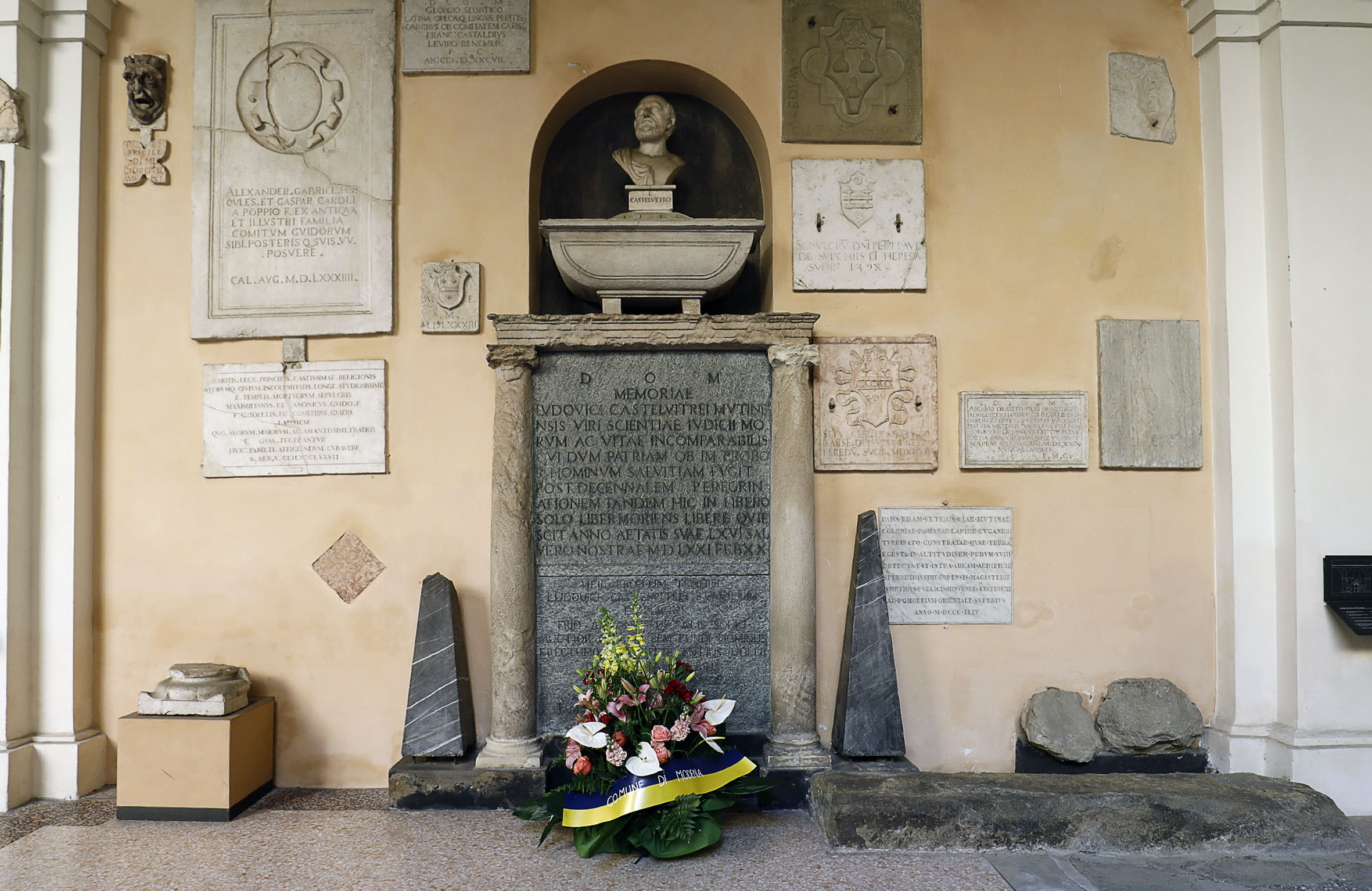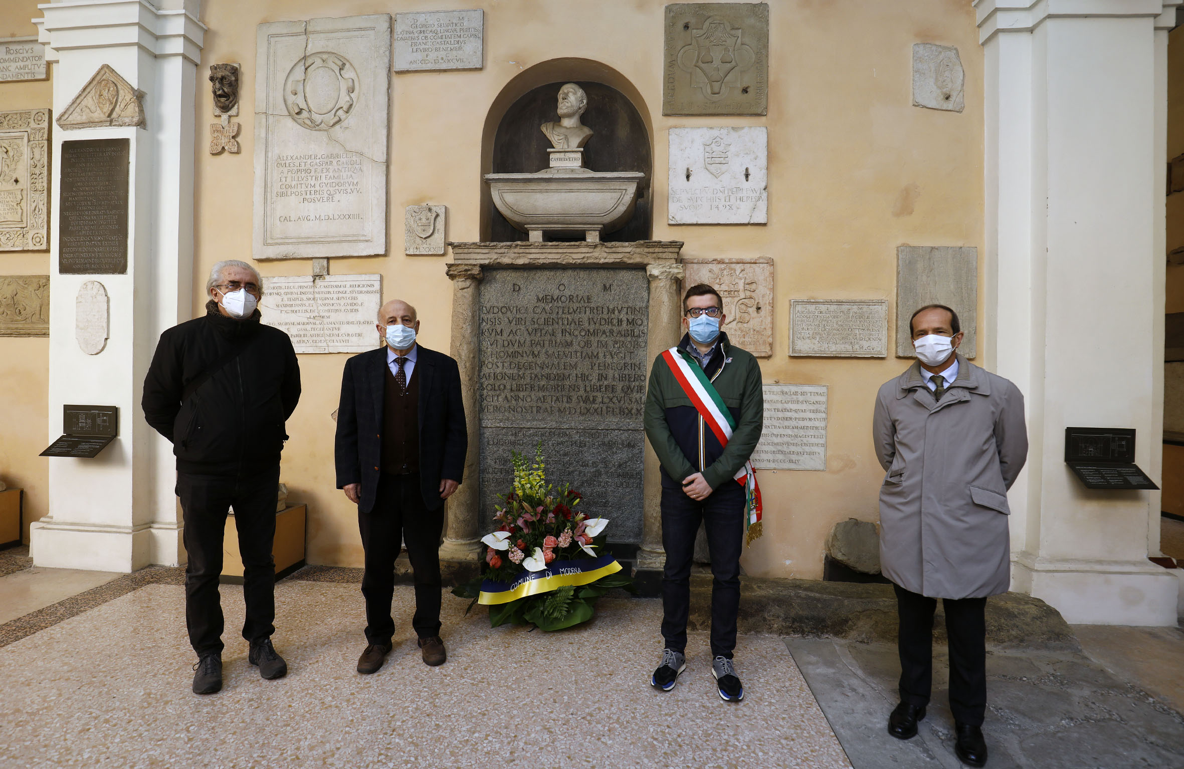 Con la deposizione di fiori al monumento a lui dedicato a Palazzo dei Musei, questa mattina, sabato 20 febbraio, con una sobria cerimonia rispettosa delle misure anti Covid-19, Modena ha ricordato Lodovico Castelvetro, intellettuale nato in città nel 1505 e morto a Chiavenna (oggi in provincia di Sondrio, ma allora parte del Cantone svizzero dei Grigioni), il 21 febbraio 1571. A 450 anni dalla morte, hanno reso omaggio al filologo e critico letterario modenese dichiarato dall’Inquisizione “eretico fuggitivo e impenitente”, l’assessore alla Cultura Andrea Bortolamasi, Salvatore Puliatti per l’Accademia nazionale di Scienze, Lettere e Arti di Modena, Alberto Menziani per la Deputazione di Storia Patria per le antiche provincie modenesi, Giorgio Montecchi per il Comitato di Modena dell'Istituto per la Storia del Risorgimento italiano, Giuseppe Berri per la chiesa evangelica, e Andrea Barbieri, studioso di Castelvetro.