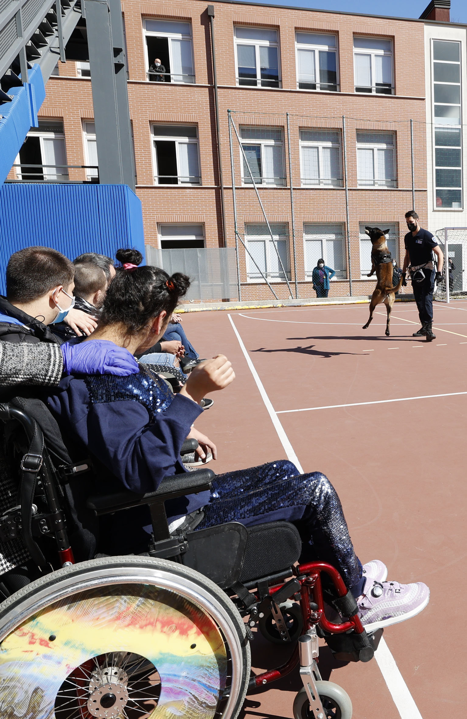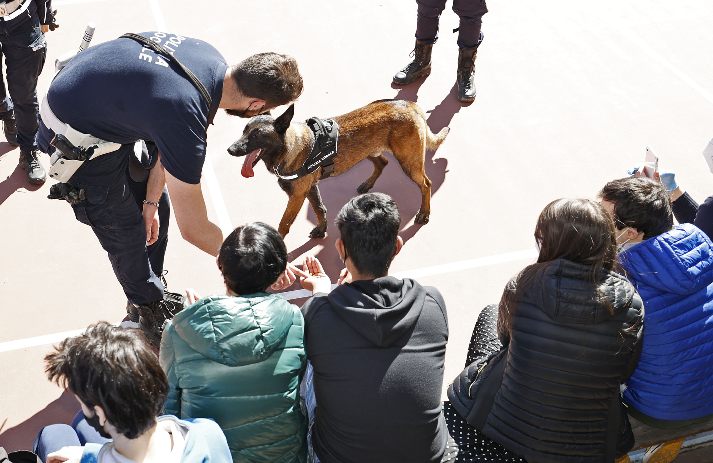 Mercoledì 17 marzo ad aspettarlo nel cortile interno del liceo scientifico di viale Reiter, c’erano la professoressa Rosa Maria Coppelli vicepreside e referente del progetto di Educazione alla Salute della scuola e alcuni docenti. C’erano soprattutto una decina di studenti con disabilità che continuano a svolgere le attività didattiche in presenza finalizzate all’inclusione scolastica: un’inclusione non certo facile visto che i compagni, oltre un migliaio, seguono invece la didattica a distanza, collegati da remoto dal pc di casa. A vivacizzare la mattinata con dimostrazioni di ricerca attiva, ma anche lasciandosi coccolare dai ragazzi, nell’ambito del percorso educativo delineato dai docenti, ha dunque pensato Pit che, attraverso l’ispettore capo dell’Unità cinofila, già promette altre “incursioni” nelle scuole che lo chiameranno. Questi interventi rientrano nelle attività educative che la Polizia locale svolge abitualmente negli istituti scolastici e con gli studenti di scuole primarie e secondarie.