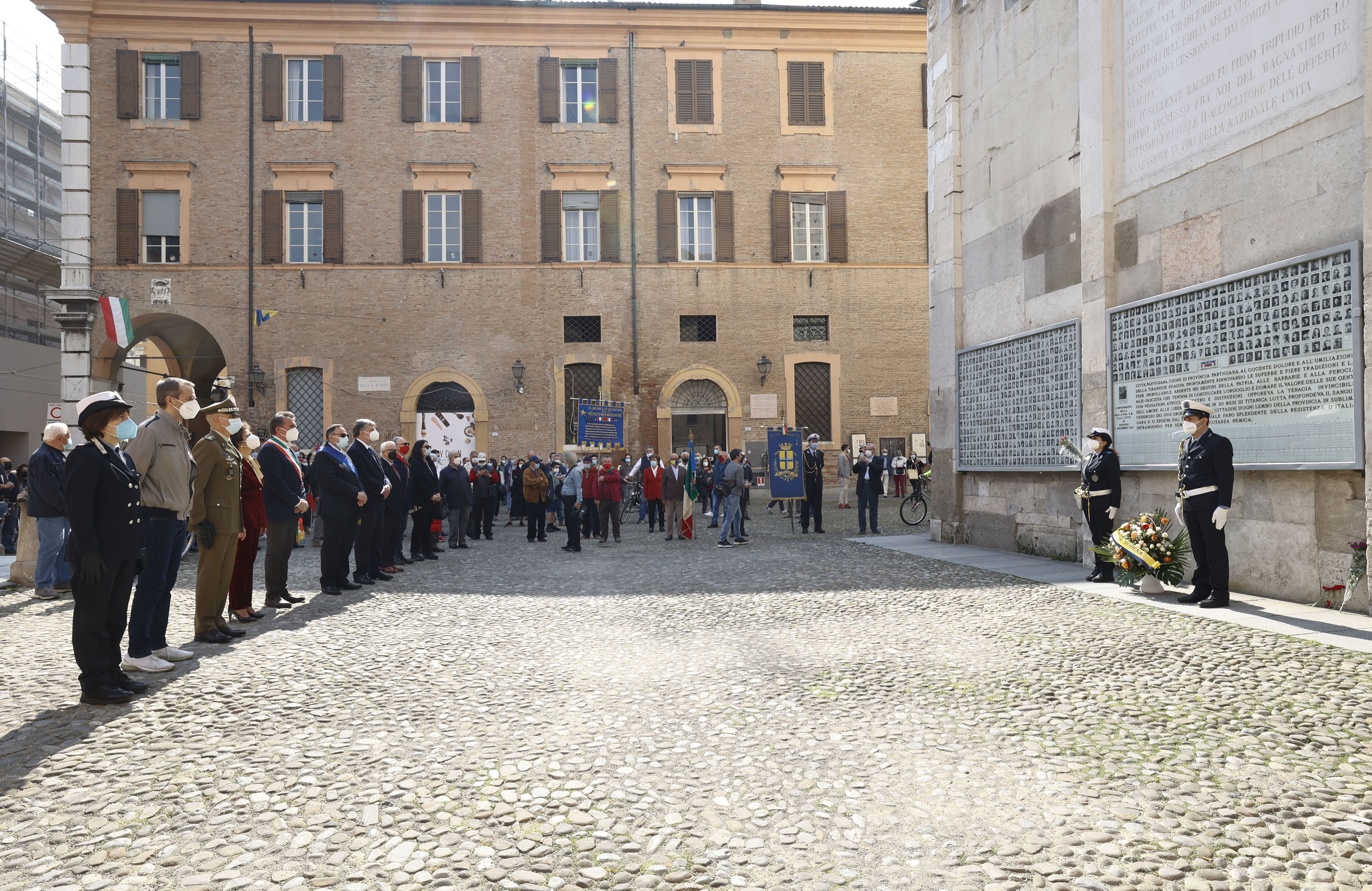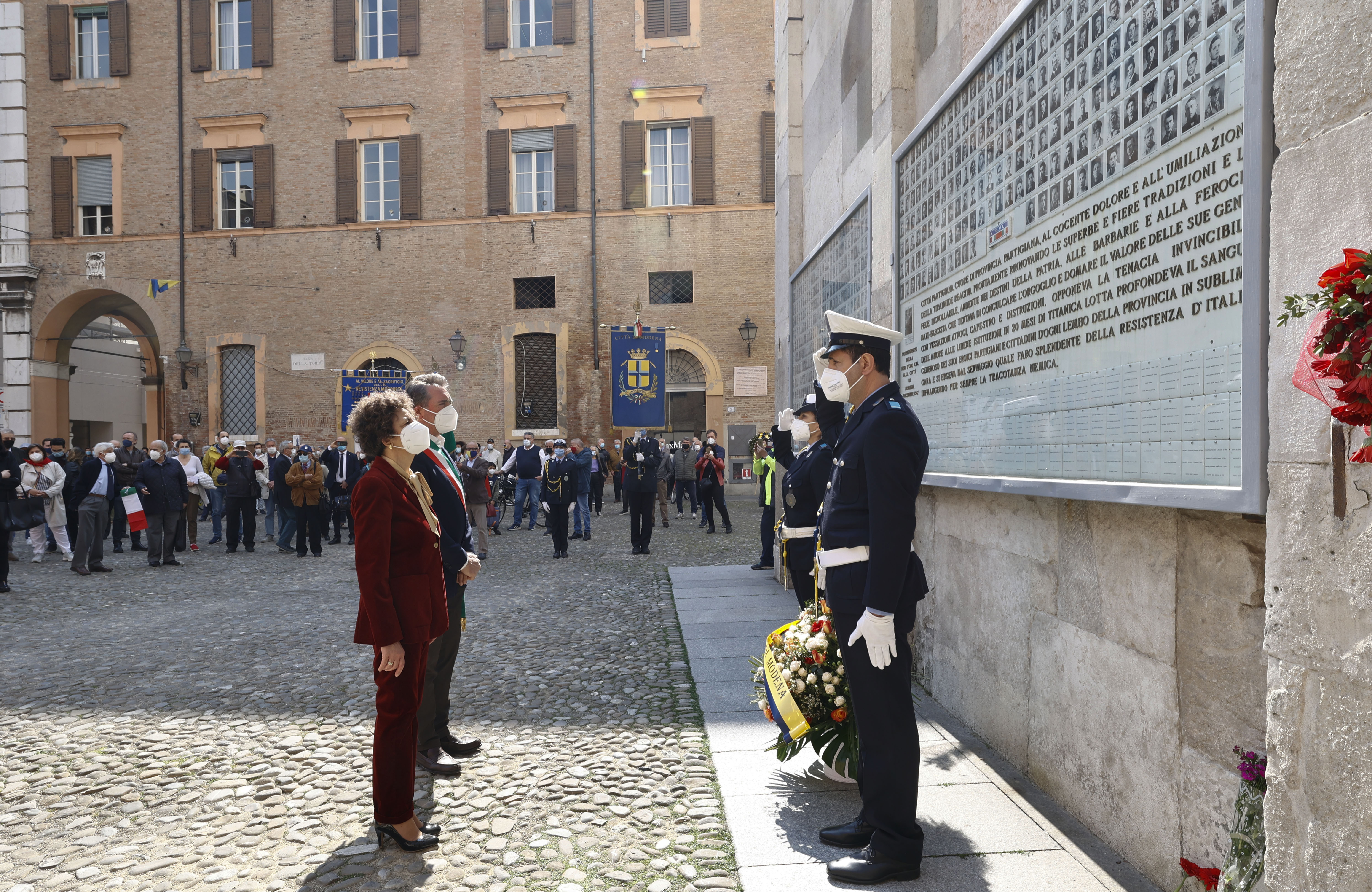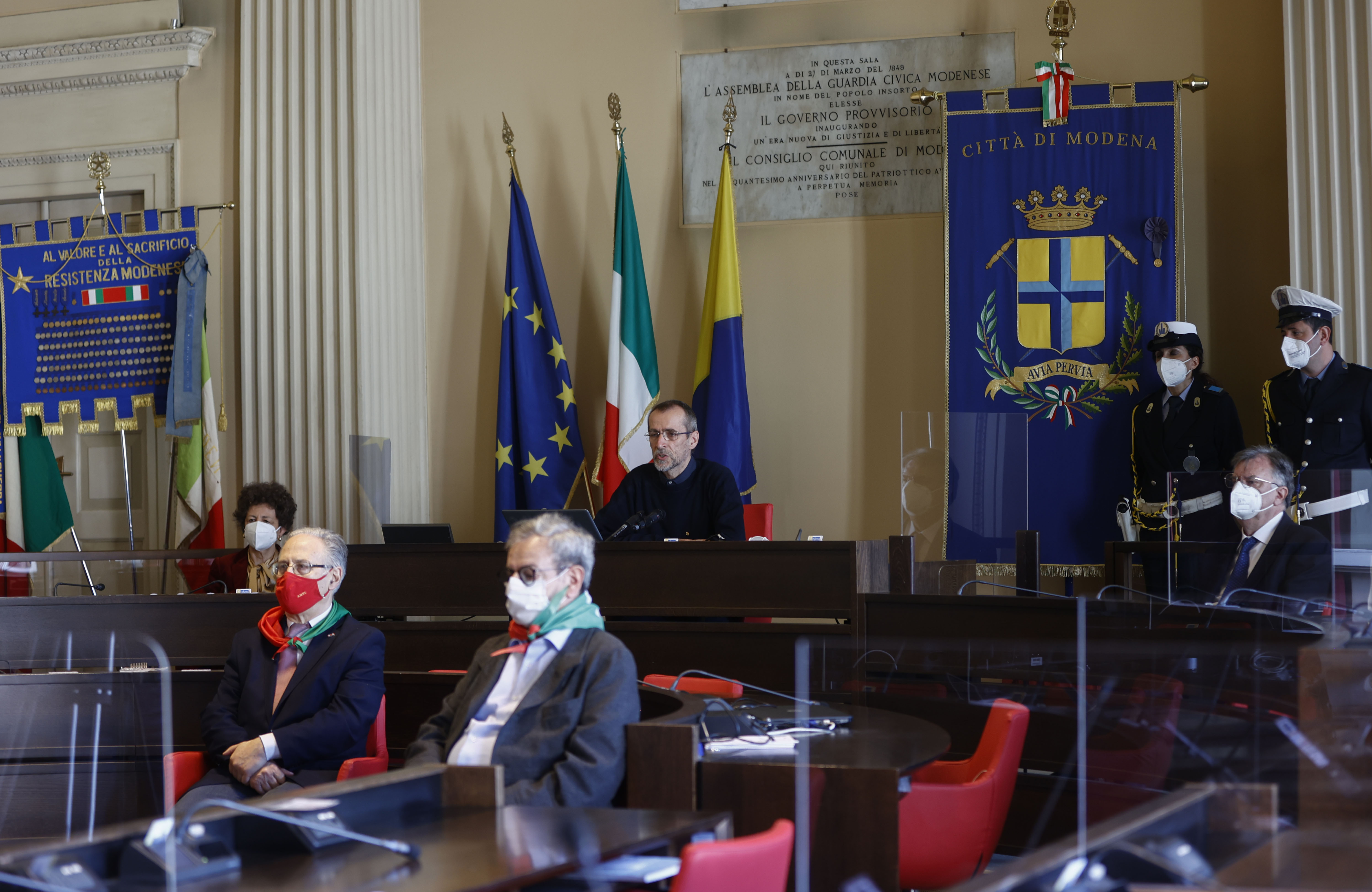 Insieme al sindaco, che è intervenuto da casa sottolineando “l’enorme rammarico di non poter essere insieme, perché non c’è niente di meglio che guardarsi negli occhi e stringersi la mano per sentirsi partecipi di momenti di profonda appartenenza e comunità nazionale come questo”, alla cerimonia hanno partecipato il presidente del Consiglio comunale Fabio Poggi e Laura Cleri, lavoratrice dello spettacolo. Presenti in sala consiliare la prefetta Alessandra Camporota, il rettore di Unimore Carlo Adolfo Porro e i rappresentanti delle associazioni partigiane, mentre i consiglieri e i rappresentanti delle istituzioni cicvili e militari erano in videoconferenza. La celebrazione è stata chiusa da Rosi Bindi, già ministra e presidente della Commissione parlamentare antimafia, collegata da remoto.