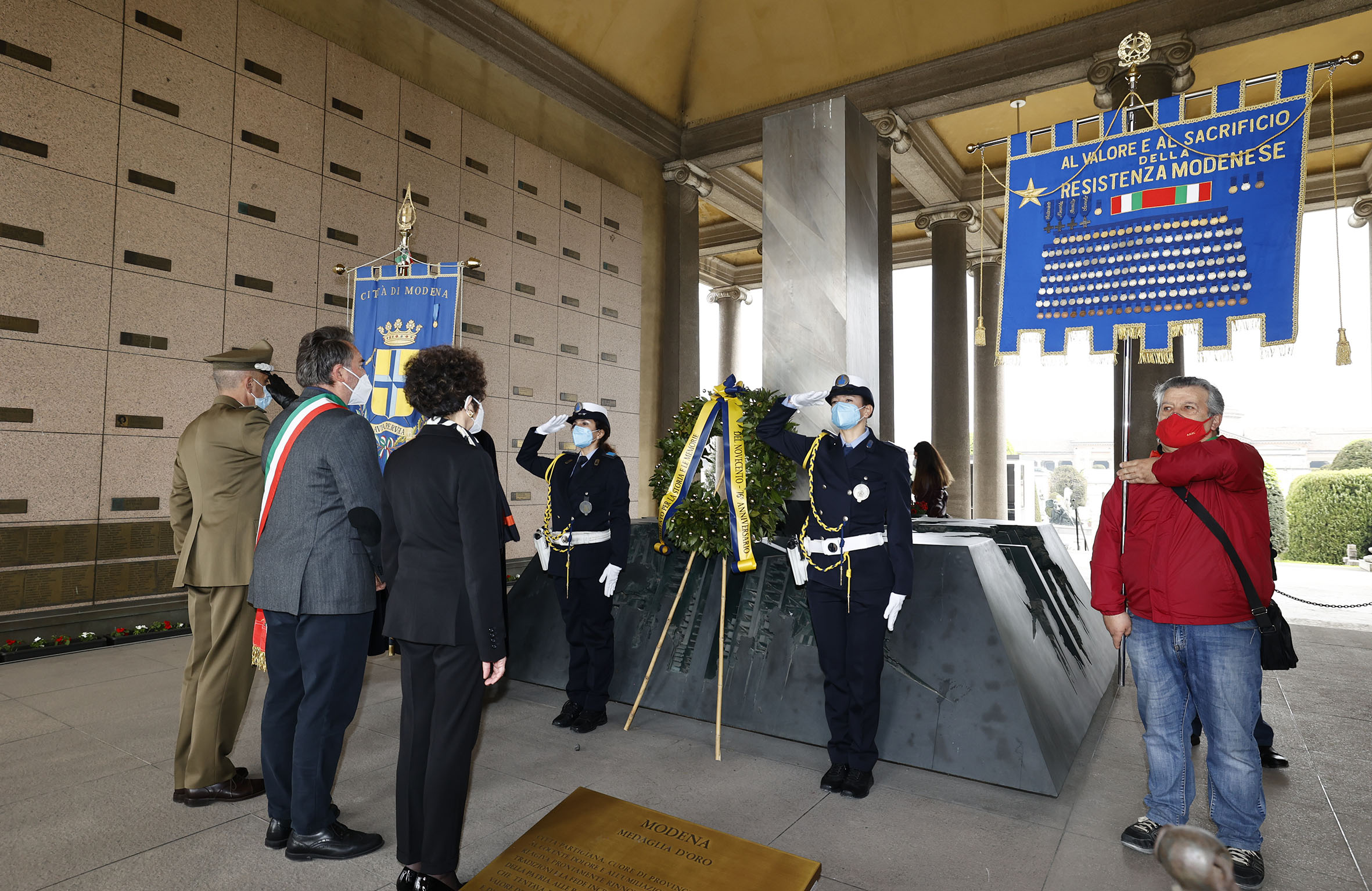 Il vicesindaco di Modena Gianpietro Cavazza, la prefetta Alessandra Camporota e il Comandante dell'Accademia Militare Rodolfo Sganga alla deposizione