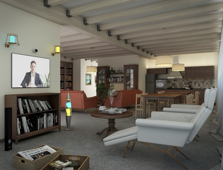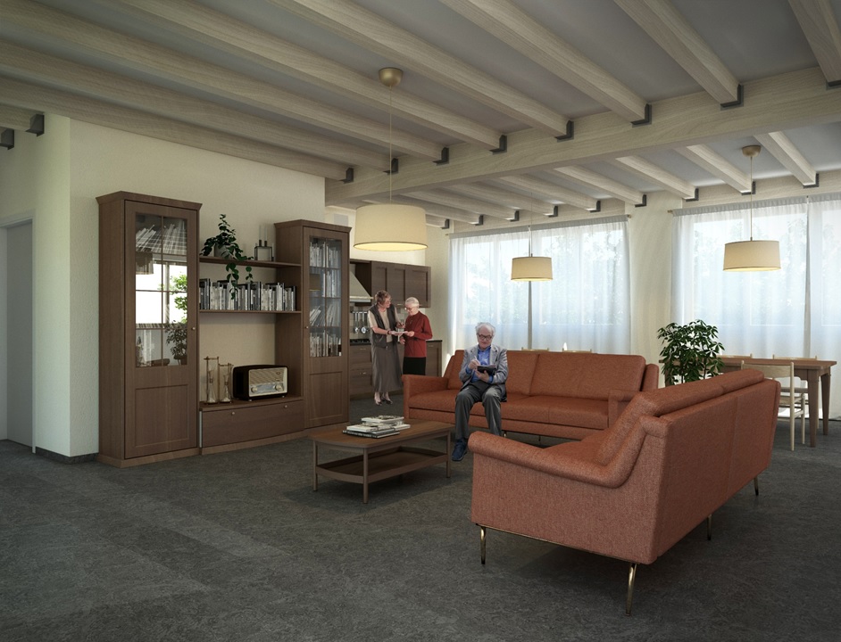 Il progetto prevede la realizzazione di un locale ad uso soggiorno di 150 metri quadrati, facilmente raggiungibile dalle camere degli ospiti. L’ambiente verrà adattato non solo con criteri di comfort, ma anche con esigenze legate all’ospite, con la possibilità di trasformarlo in itinere attraverso pareti scorrevoli e di renderlo in grado di accogliere il coniuge o l’assistente. Gli adattamenti ambientali consentiranno anche un miglior approccio socio-assistenziale lungo il decorso della malattia, agevolando la gestione senza ulteriori stress per l’ospite.