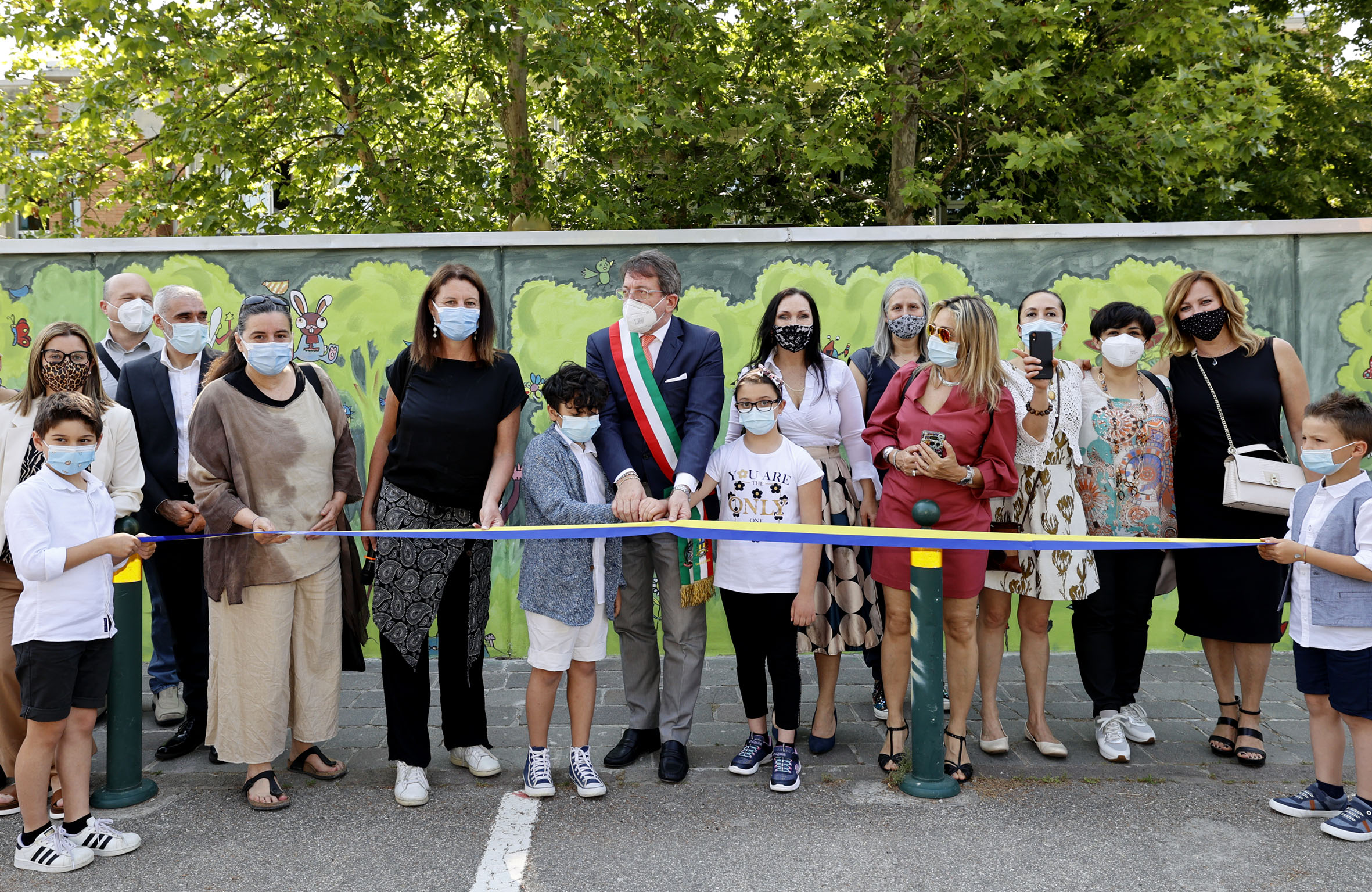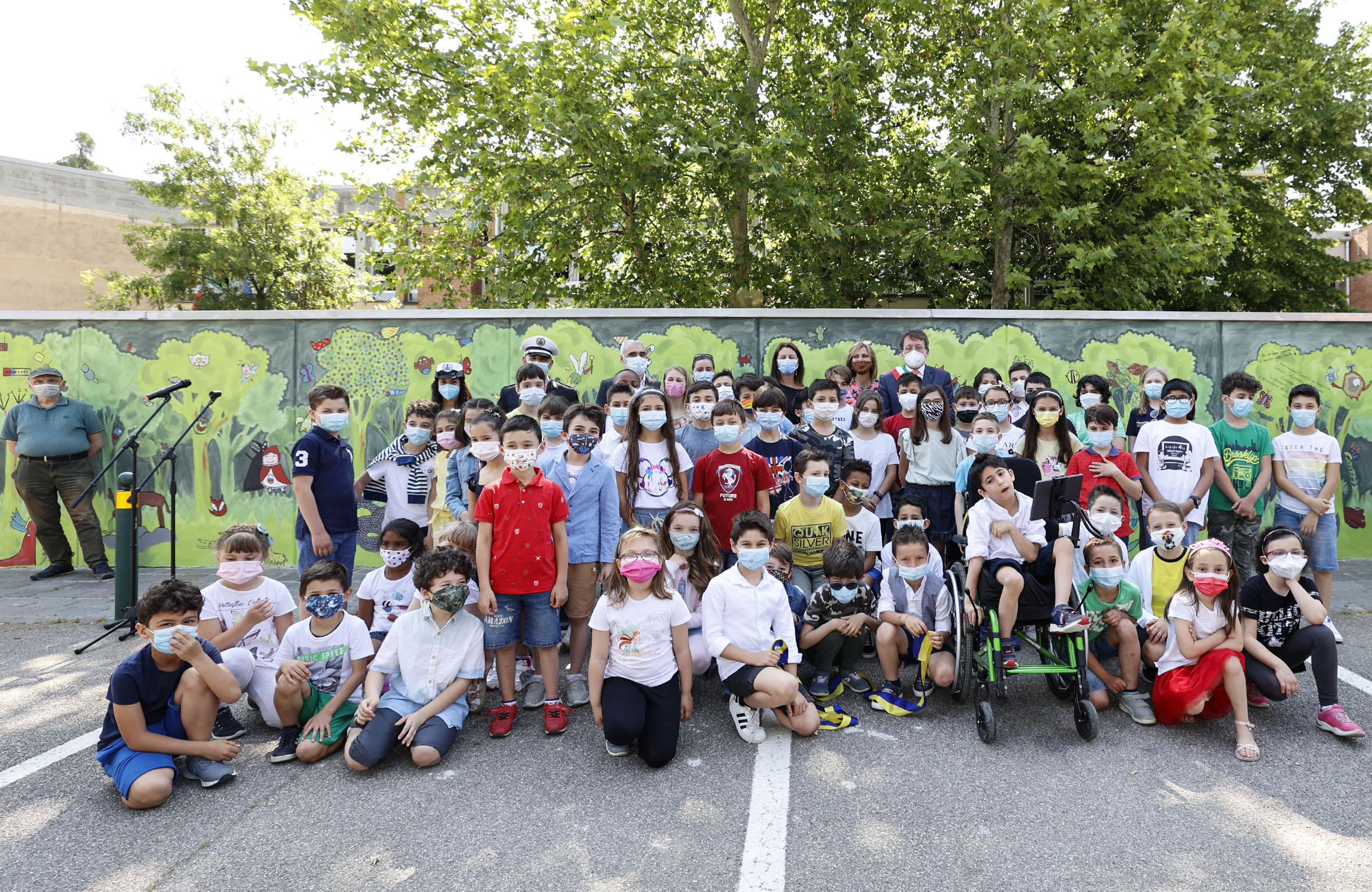 Un bosco lussureggiante abitato da gnomi, fatine e animali fantastici è sorto in via Frescobaldi a Modena. A farlo nascere sono stati gli alunni e i genitori della primaria Saliceto Panaro che venerdì 4 giugno hanno inaugurato il vivace murale insieme al sindaco Gian Carlo Muzzarelli e alle assessore all’Istruzione Grazia Baracchi e all’Ambiente Alessandra Filippi. Sindaco e assessora Baracchi si sono poi recati in ciascuna delle classi della scuola per ringraziare i bambini dell’impegno dimostrato sottolineando l’importanza di collaborare insieme per rendere più bella e inclusiva la loro scuola dimostrando cura e attenzione per l’ambiente.