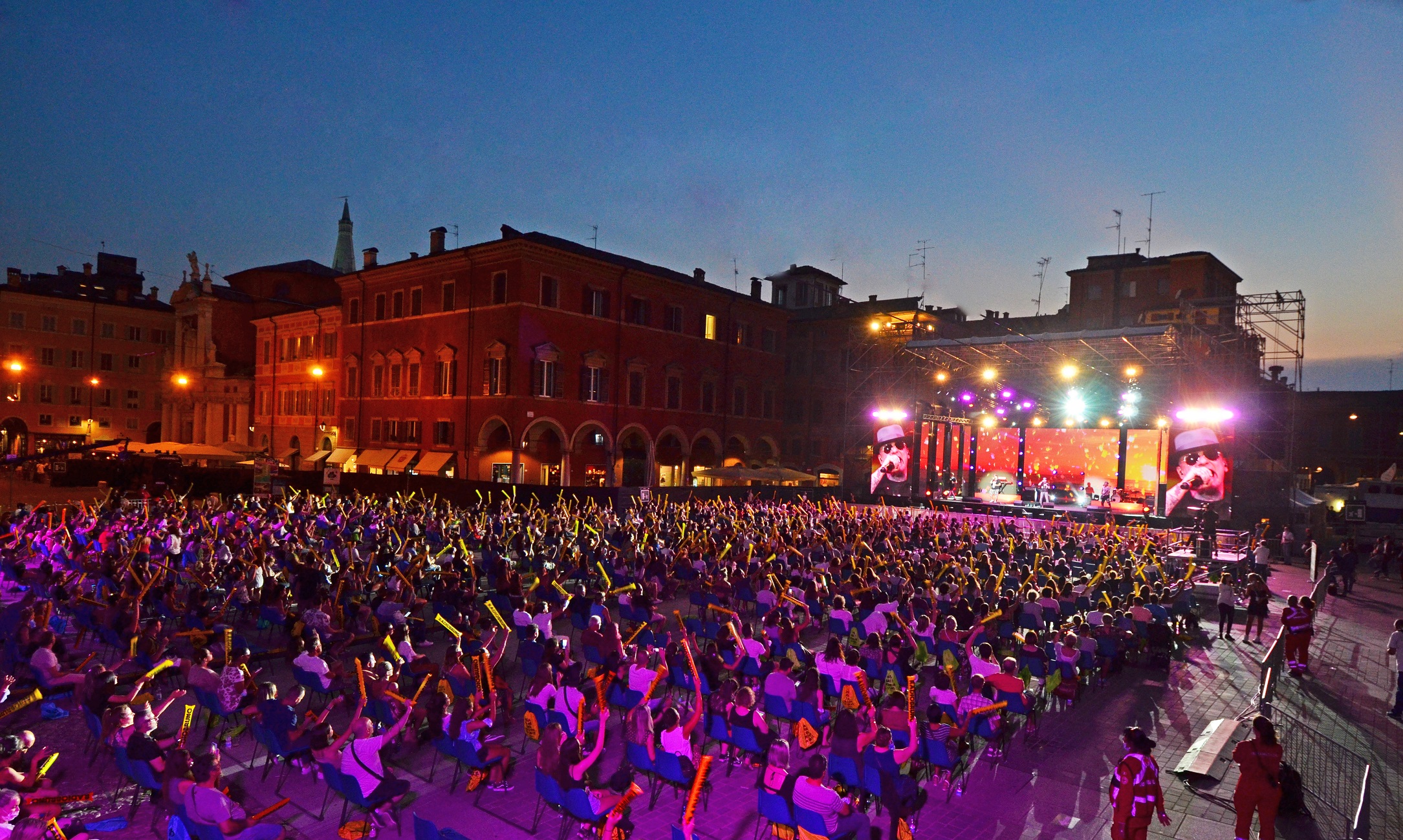 Nelle due serate l’accesso in piazza Roma è riservato alle mille persone che hanno acquistato il biglietto in prevendita (le date sono ormai sold out), l’ingresso è da corso Accademia (laterale di corso Canalgrande) a partire dalle 18. Il palco sarà sul lato di piazza San Domenico, in posizione arretrata rispetto alle altre edizioni per ridurre al minimo il backstage e, non consentendo visibilità ai lati, per evitare il formarsi di assembramenti fuori dall’area circoscritta della platea numerata e distanziata.