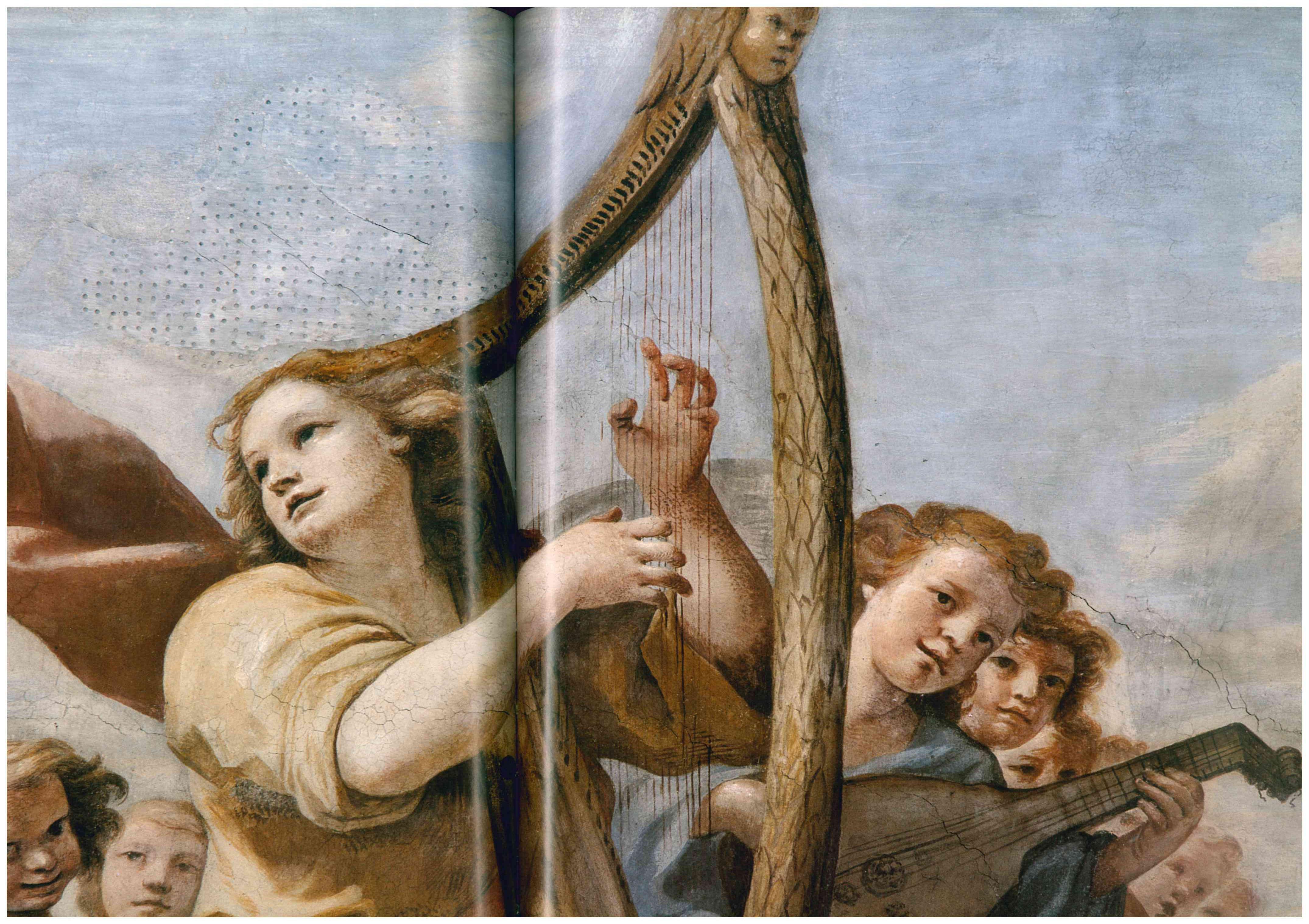 Oltre all’affresco la “Vergine accolta in cielo” nella cupola, all’interno della storica chiesa oggetto di rafforzamento sismico e restauro decorativo, altre opere sono da attribuire a Mattia Preti: il “Concerto d’angeli” nel coro e gli “Evangelisti” dei pennacchi sottostanti. Il tema del concerto, ampiamente praticato in pittura da oltre un secolo, mai era stato tradotto in forme tanto monumentali: un angelo al centro dirige una vera e propria orchestra in cui i musicisti, muniti di numerosi strumenti, accompagnano un ampio coro di voci angeliche.