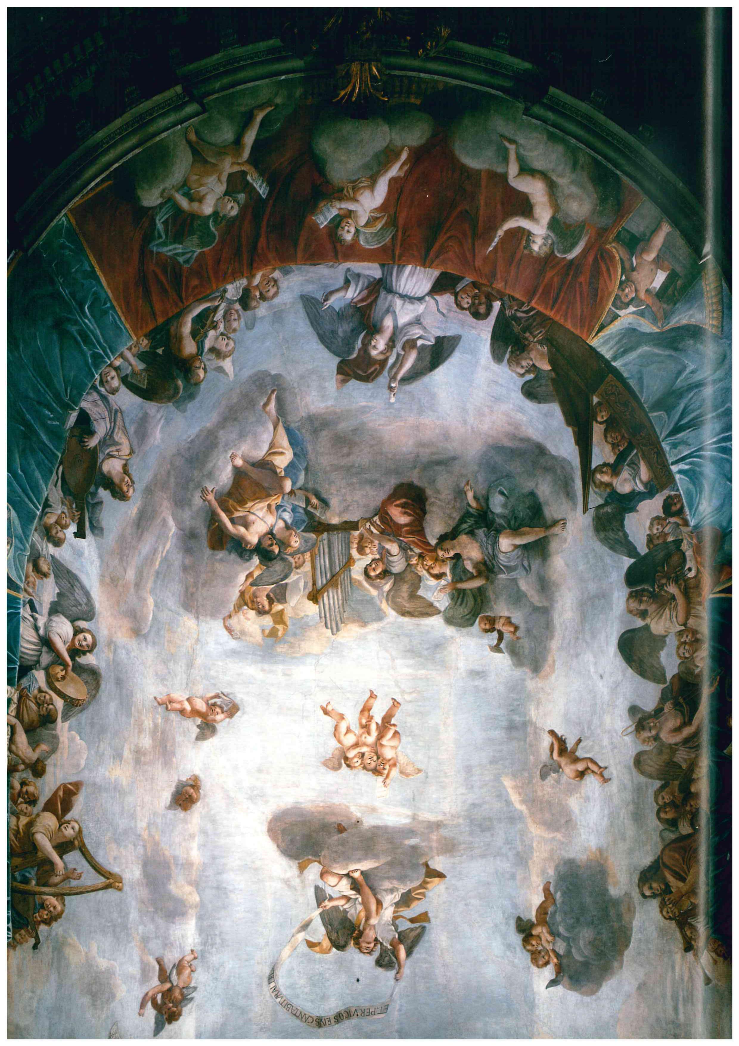 E nella sua realizzazione, l’artista, inserisce espedienti illusionistici tipici della cultura teatrale del tempo, come le ombre delle nuvole portate al di fuori dello spazio dipinto, sugli stucchi delle arcate, a invadere lo spazio dell’architettura con l’obiettivo di coinvolgere emotivamente il fedele. Il tutto, però, all’insegna di un naturalismo tipico della tradizione pittorica emiliana.