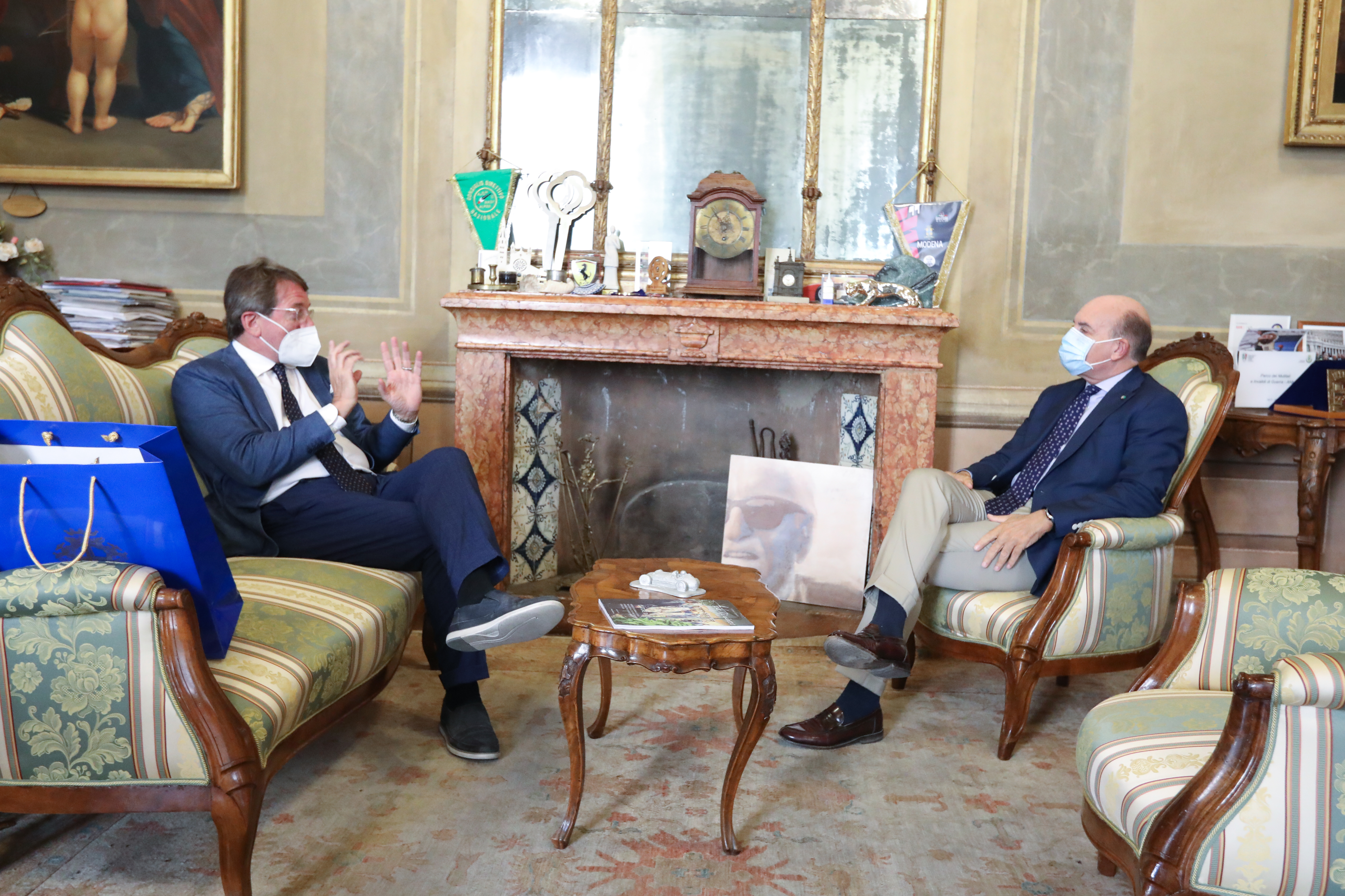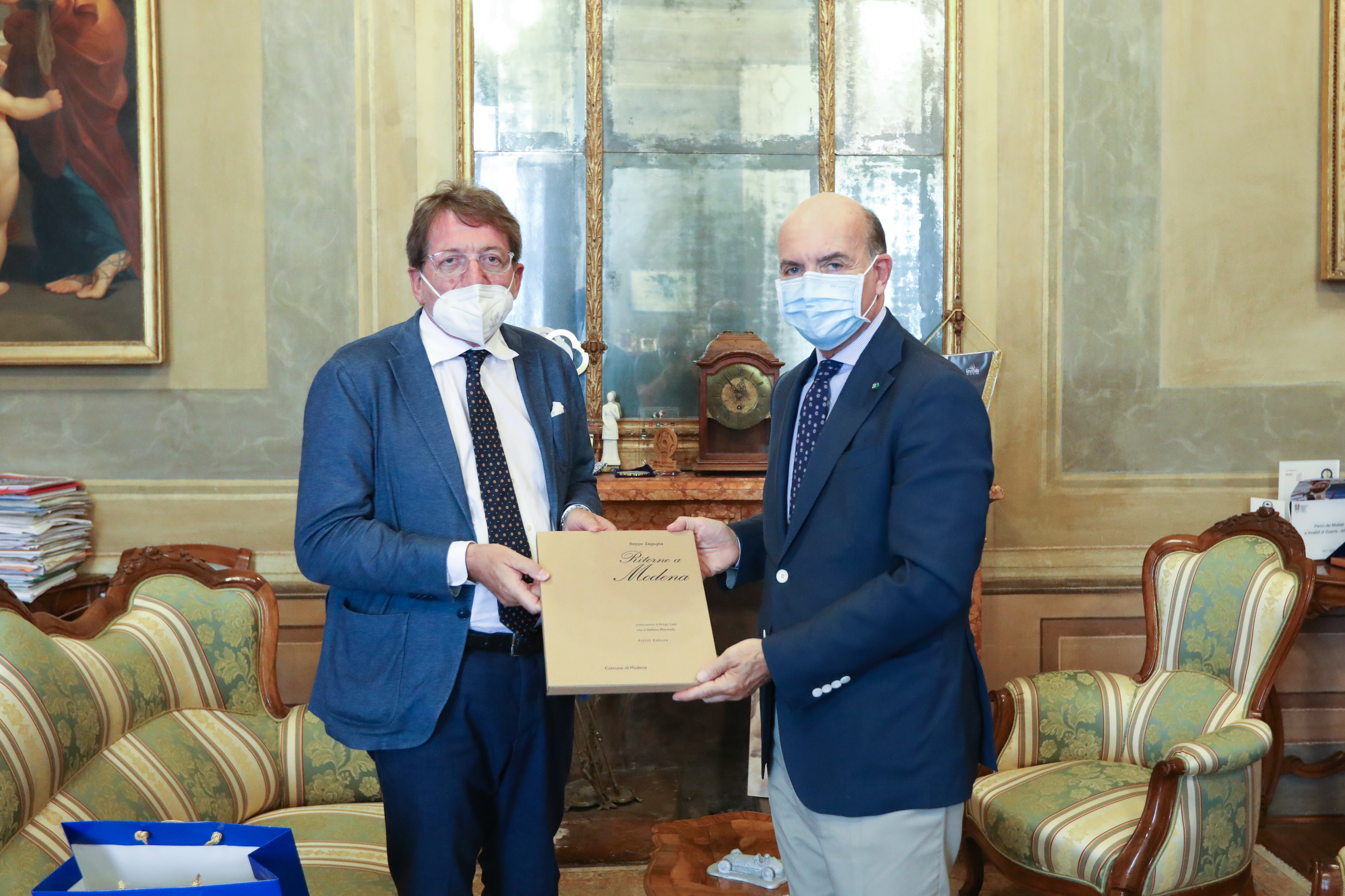 Al termine dell’incontro Muzzarelli ha donato al questore Agricola una bottiglietta di Aceto balsamico tradizionale di Modena dell’Acetaia comunale e, come invito a tornare in città, il volume di Beppe Zagaglia “Ritorno a Modena”.