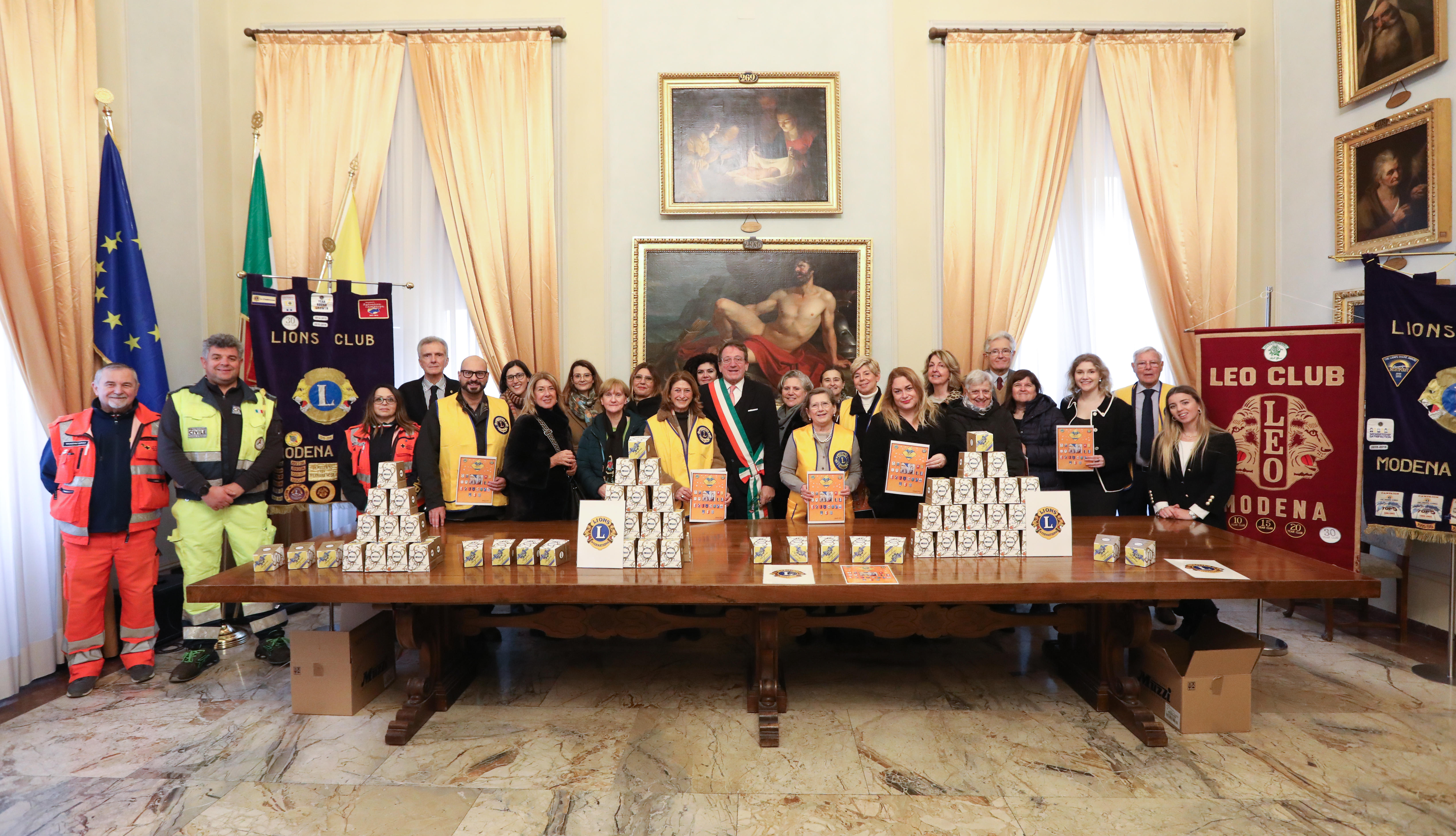 Sono oltre 1.000 i pandorini di Natale donati dai Lions club modenesi e giovani Leo destinati agli anziani ospiti delle 16 strutture protette di Modena. La consegna simbolica da parte dei rappresentanti dei Club Lions e Leo modenesi alle referenti delle strutture protette si è svolta nella mattinata di lunedì 5 dicembre nella sala di Rappresentanza del Municipio, presenti il sindaco Gian Carlo Muzzarelli e l’assessora alle Politiche sociali Roberta Pinelli.
