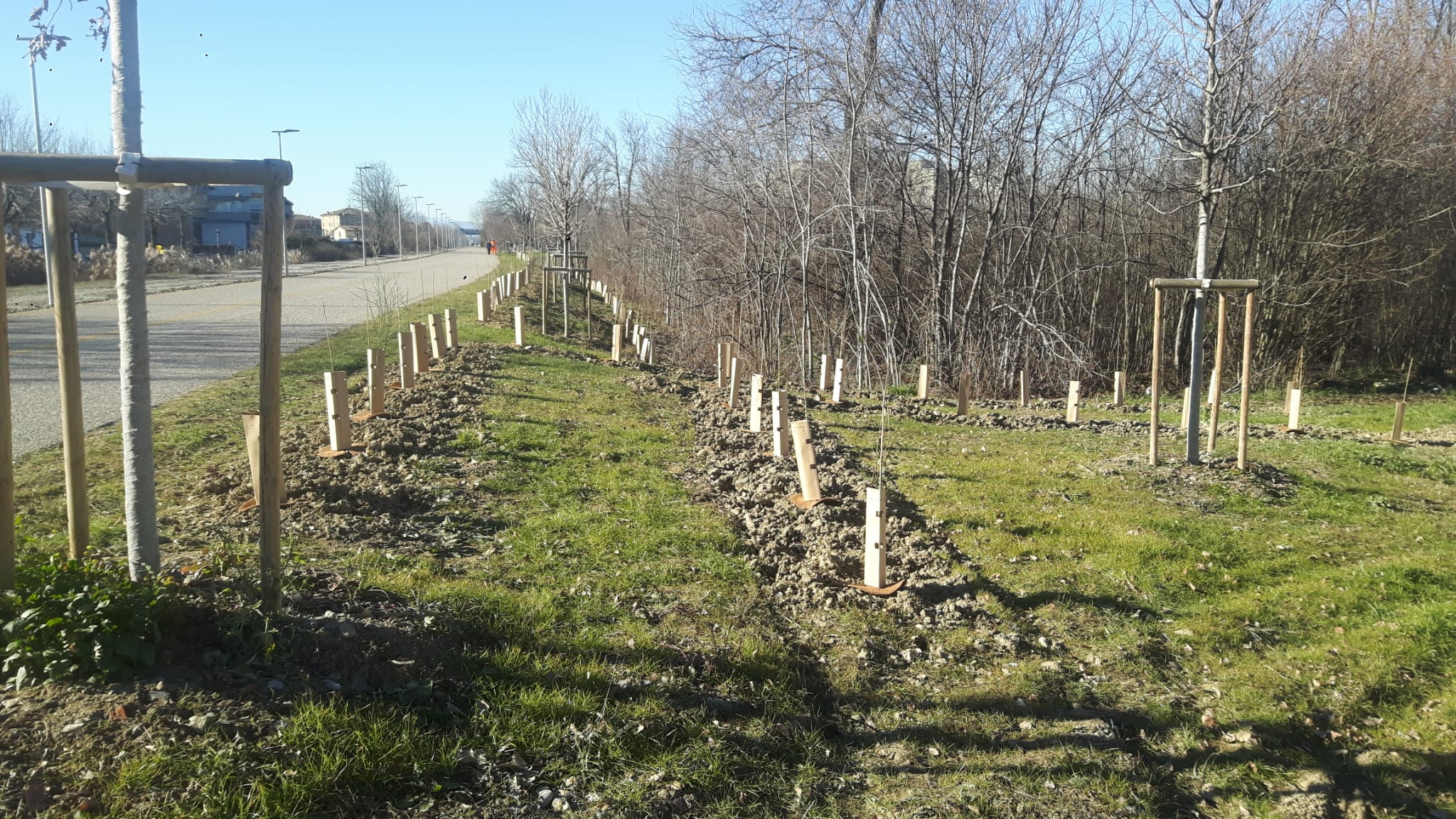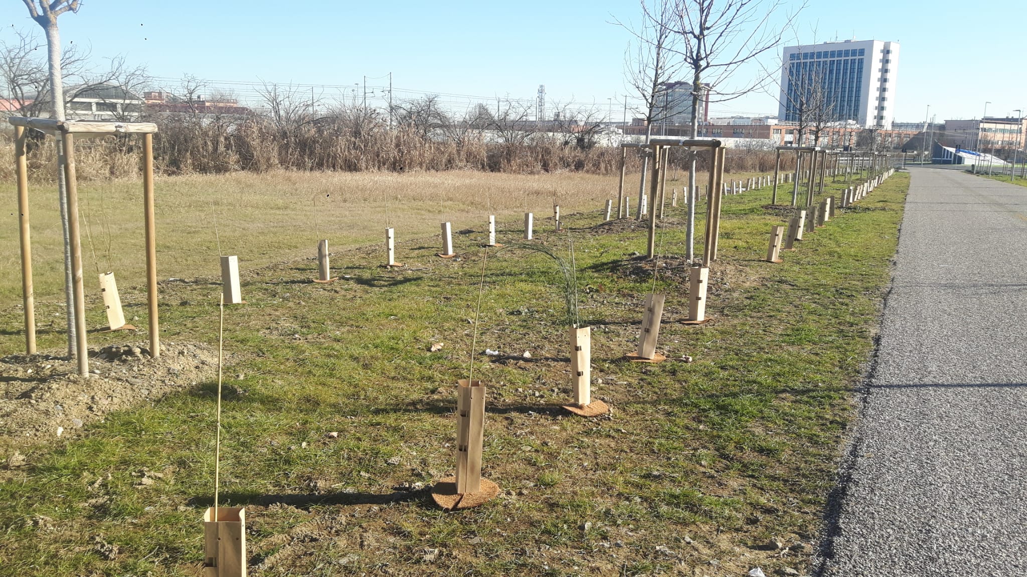 Le nuove piante sono state collocate lungo l’asse principale del percorso ciclopedonale, per una lunghezza complessiva di circa 525 metri, e nell’area interclusa tra la Diagonale e il cimitero di San Cataldo per una lunghezza di circa 100 metri. Crescendo, le piante formeranno una siepe complessa, profonda circa tre metri, per una superficie di impianto complessiva di circa 2.175 metri quadrati.