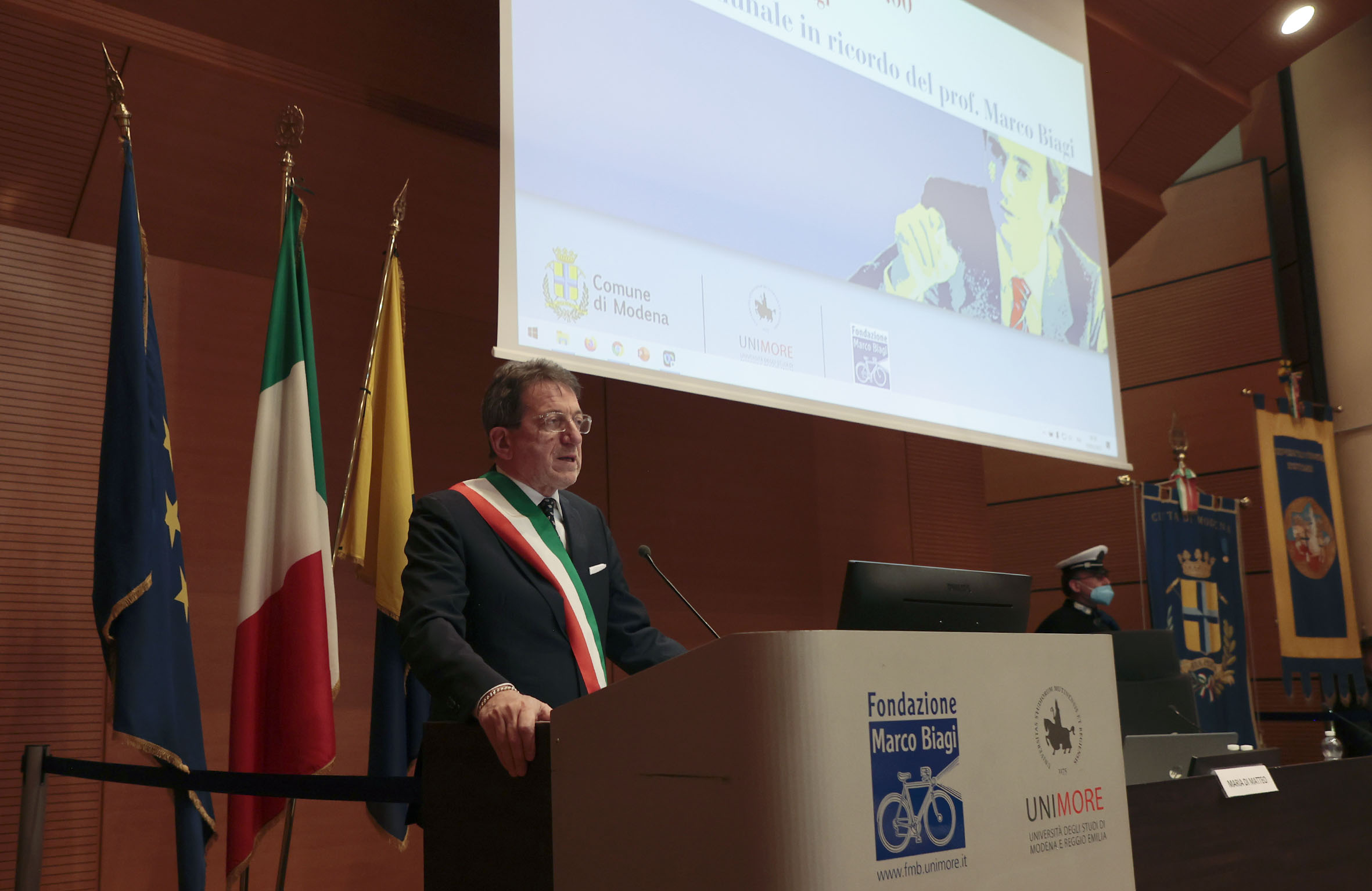 All’iniziativa, promossa congiuntamente dal sindaco Gian Carlo Muzzarelli, dal presidente del Consiglio comunale Fabio Poggi, dal rettore di Unimore Carlo Adolfo Porro e dalla Marina Orlandi Biagi, presidente della Fondazione dedicata al marito, sono intervenuti anche il ministro dell’Istruzione Patrizio Bianchi, il presidente della Regione Emilia Romagna Stefano Bonaccini e il professor Enrico Traversa, docente dell’Università di Bologna (Dipartimento di Scienze politiche e sociali), amico e collaboratore di Biagi sui temi del diritto del lavoro in chiave europea.