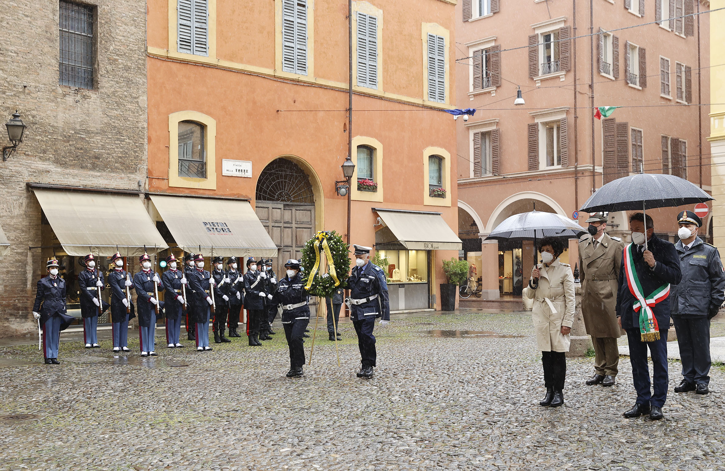 Il sindaco di Modena Gian Carlo Muzzarelli e le autorità cittadine, la prefetta Alessandra Camporota e i vertici di Accademia militare, Procura della Repubblica, Arma dei carabinieri, Polizia di Stato, Guardia di finanza, Polizia locale e Vigili del fuoco, hanno partecipato alle cerimonie nei luoghi della memoria insieme a rappresentanti di associazioni partigiane e combattentistiche.