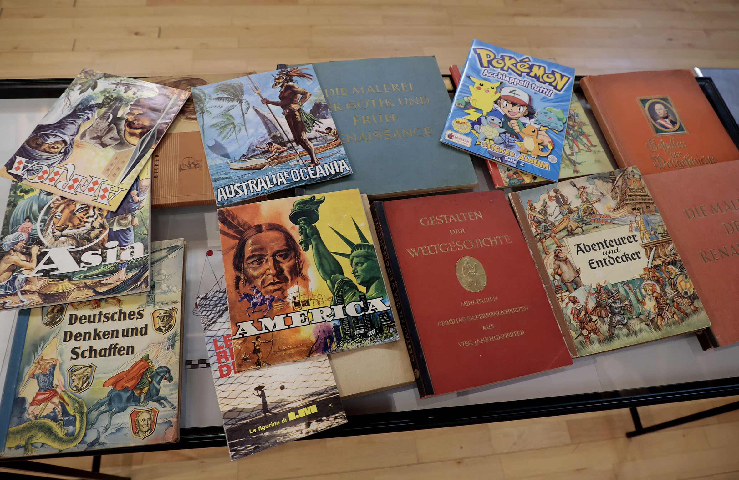 Gli album tedeschi, editi tra il 1933 e il 1938, donati da Heinz Jurgen Tron e Gabriele Falk, contengono figurine che venivano distribuite nei pacchetti di sigarette e di margarina per poi essere, appunto, raccolte in album. I volumi, in ottime condizioni, trattano di arte, storia, uniformi e bandiere.