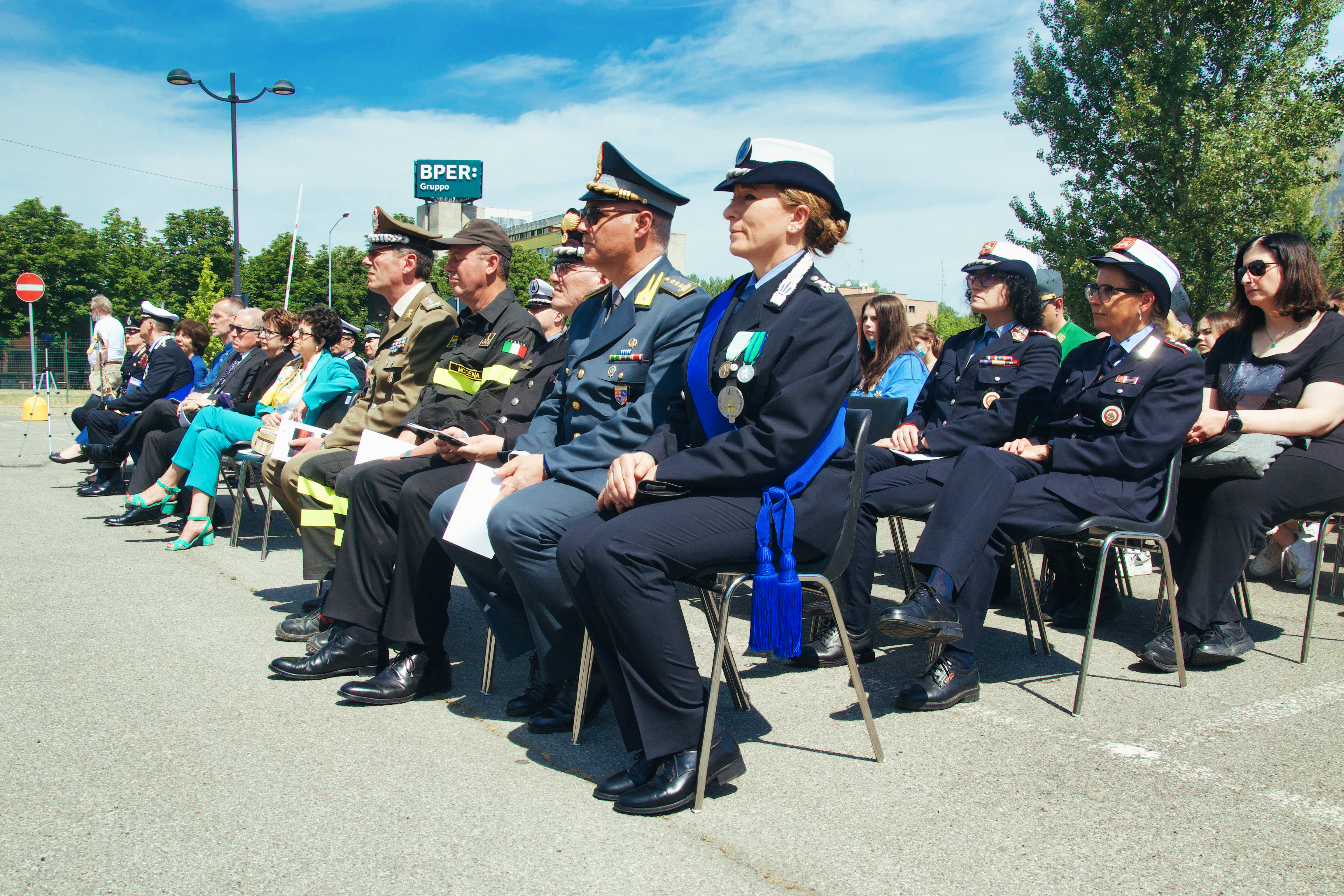 Il sindaco Gian Carlo Muzzarelli e il comandante Roberto Riva Cambrino hanno aperto la commemorazione con la rassegna del Corpo sulle note del Piave prima degli inni nazionale e dell’Unione Europea, alla presenza delle autorità civili e militari della città tra cui la prefetta Alessandra Camporota, il presidente del Consiglio comunale Fabio Poggi, il procuratore della Repubblica Luca Masini, la questora Silvia Burdese, il comandante dell’Accademia militare Davide Scalabrin, il comandante del Comando provinciale dei Carabinieri Antonio Caterino, comandante provinciale dei Vigili del Fuoco Ermanno Andriotto e il comandante della Guardia di Finanza Adriano d’Elia.