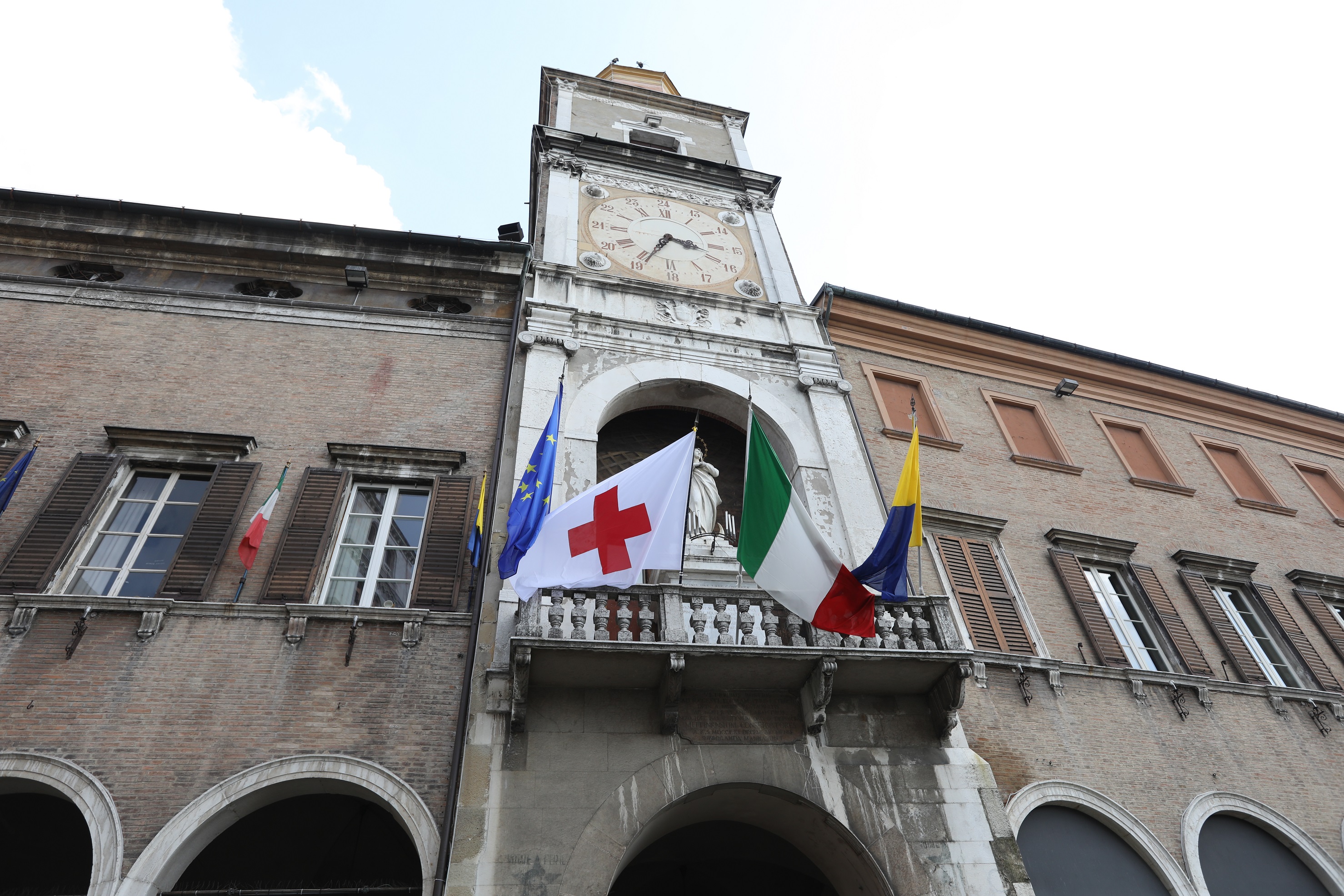 Nel pomeriggio di lunedì 2 maggio il sindaco Gian Carlo Muzzarelli ha ricevuto dalle mani del presidente Carlo Meschiari il vessillo della Croce Rossa che rimarrà esposto al balcone del Palazzo comunale fino a domenica 8 maggio, con l’obiettivo di sottolineare l’adesione del Comune alle celebrazioni. Dopo aver ricevuto il ringraziamento dell’Amministrazione per l'attività svolta sul territorio e a favore della comunità, Meschiari ha espresso “l’orgoglio” di poter affidare al Comune lo stendardo: “Lo facciamo – si legge in una lettera firmata dal presidente – con la speranza che quella protezione tanto importante per noi sui campi di battaglia possa arrivare anche nei nostri Comuni e nelle nostre terre permettendoci di continuare a tenere per l’unica parte che davvero deve essere tutelata: quella di chi soffre”. Nella delegazione della Cri modenese ricevuta a Palazzo comunale c’erano anche i consiglieri Marco Ranuzzi e sorella Chiara Galli e la consigliera giovanile Austria Glory.