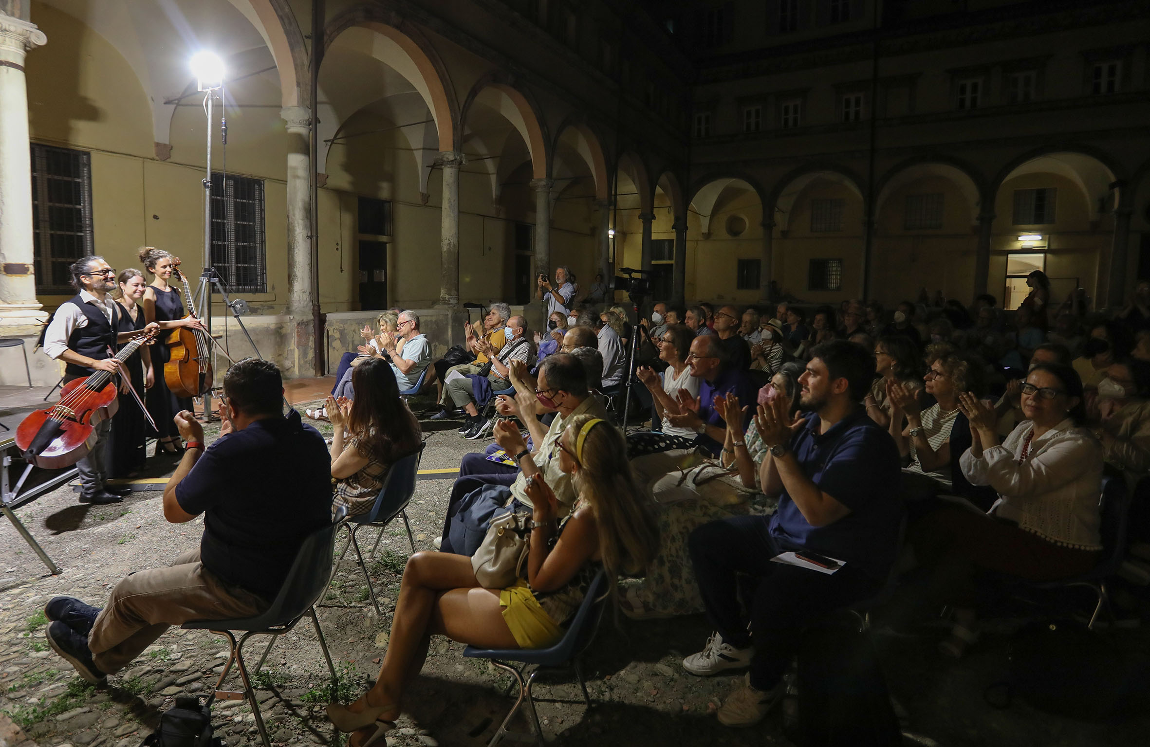 Sold out nel cortile del Leccio per il concerto jazz del trio di Lucio Bruni e nel chiostro di Santa Chiara per il “Duo improbabile”, Virginia Guastella e Claudio Trotta; pienone anche in San Pietro, sia per il live nel chiostro “Parigi barocca - Une histoire mystérieuse” nel chiostro sia per l’appuntamento su Bach “Toccata e Fuga” all’interno dell’abbazia. Ancora, posti tutti occupati nei cinque turni serali dell’iniziativa “Wondrous machine - La macchina delle meraviglie”, nella chiesa di Santa Maria delle Asse, dove era consentito l’accesso alla cantoria dell’organo cinquecentesco. E poi piazza XX settembre straripante di persone per l’esibizione dei Nero a metà, per il tributo a Pino Daniele i cui brani più noti sono riecheggiati in centinaia di voci. Sono i principali riscontri dell’edizione 2022 della Festa della musica che sabato 18 giugno ha “riempito” Modena con una trentina di concerti in 17 differenti location, dal centro storico ai parchi pubblici, per una stima di pubblico di circa 3.000 – 3.500 persone, come emerso dai primi riscontri dell’Amministrazione comunale. La rassegna avrà una “coda” martedì 21 giugno.