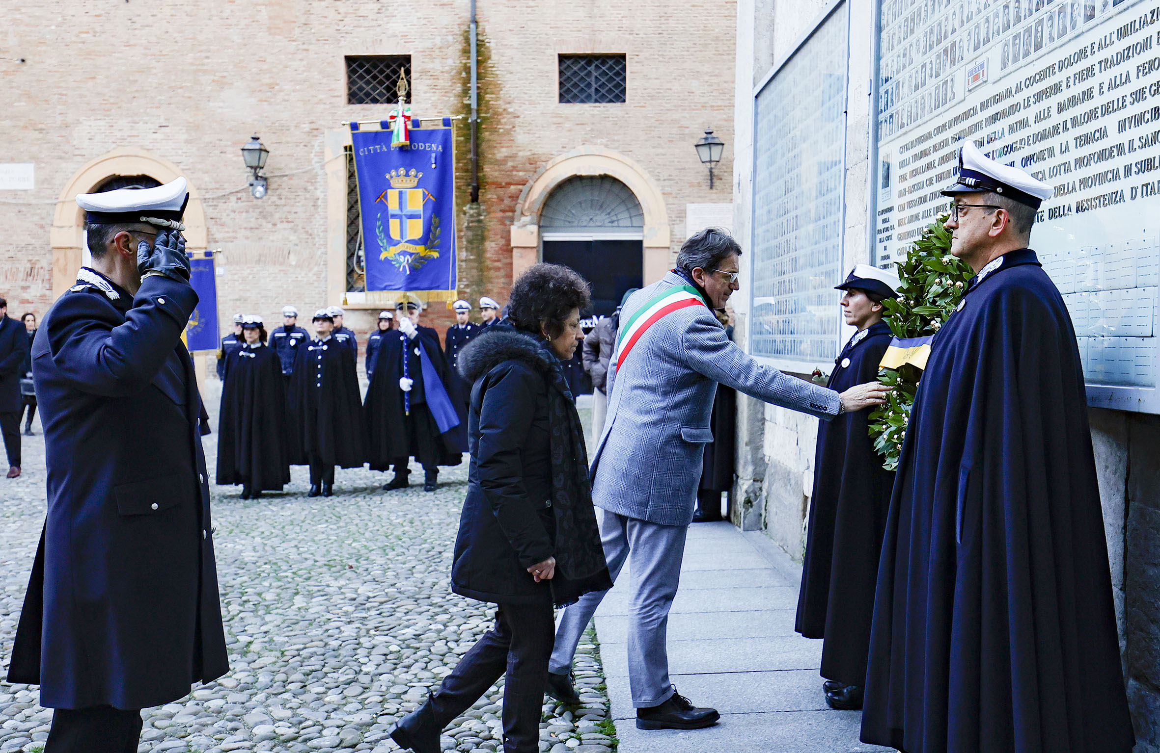 La cerimonia, a cui hanno partecipato anche i comandanti dei corpi di Polizia locale di altri Comuni e Unioni (Formigine, Sassuolo, Fiorano, Terre di Castelli, Terre d'argine, Unione Area Nord e Polizia provinciale) è quindi proseguita con l’omaggio ai caduti. Assieme alla prefetta Alessandra Camporota, sindaco e comandante, accompagnati dal picchetto d’onore, hanno deposto una corona d’alloro al Sacrario della Ghirlandina. Erano inoltre presenti il presidente del Consiglio comunale Fabio Poggi e il presidente della Provincia di Modena Giandomenico Tomei, il comandante dell’Accademia militare Davide Scalabrin, il procuratore della Repubblica Luca Masini, la questora Silvia Burdese, il comandante dei Carabinieri Antonio Caterino, della Guardia di Finanza Gianluca Capecci e dei Vigili del Fuoco Ermanno Andriotto. La cerimonia si è infine conclusa in Duomo con la Santa Messa celebrata dal vescovo Don Erio Castellucci.