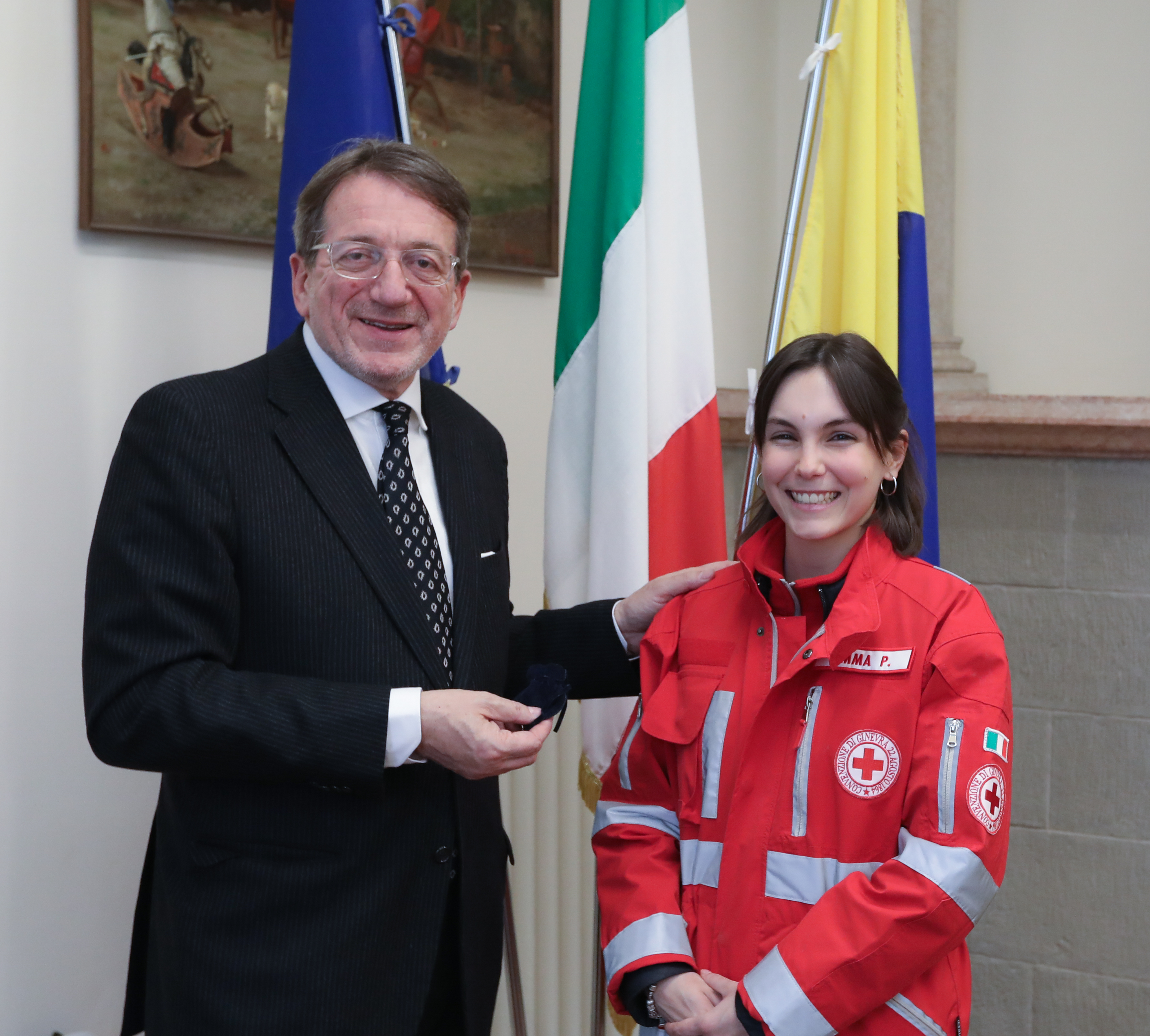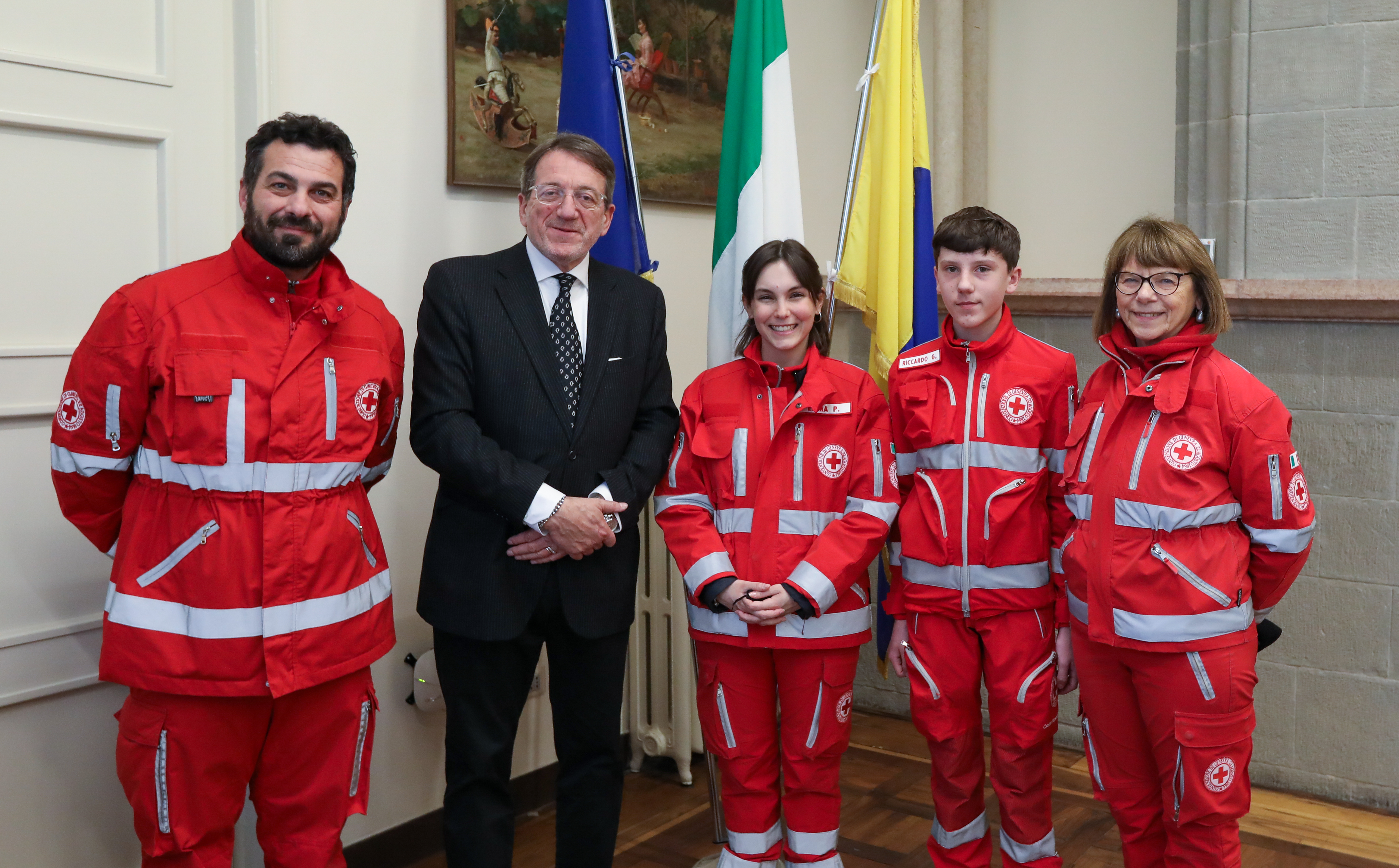 Ad accompagnarla in Municipio c’era una piccola delegazione CRI, formata da Lola Fabbri delegata Area Sviluppo, Fabrizio Panizza delegato Area Operazioni Emergenza e Soccorso e Riccardo che ha 16 anni ed è uno dei volontari più giovani dell’organizzazione.