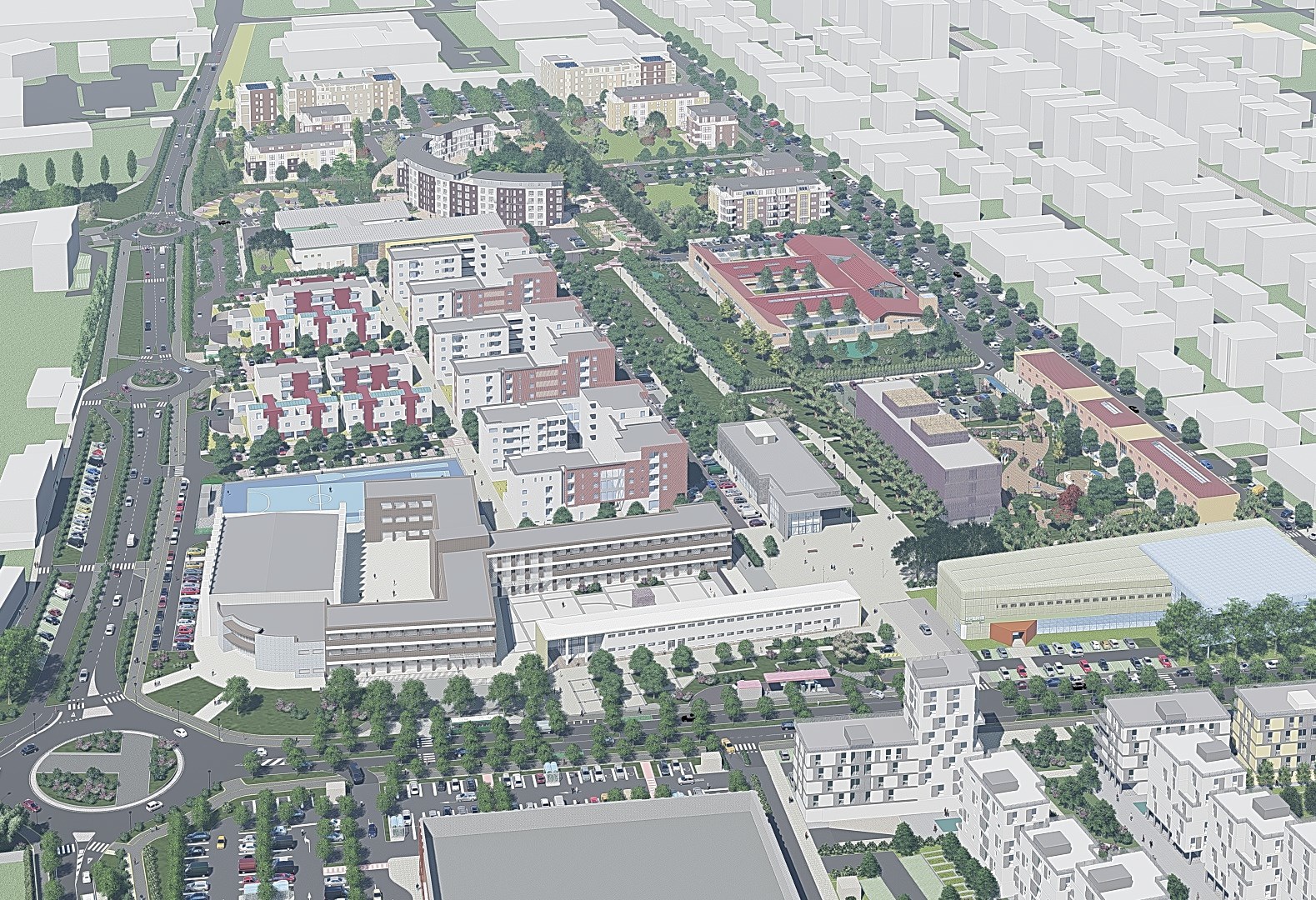 Molti degli interventi pubblici dell’area rientrano tra i progetti del Pinqua (il Piano per la qualità dell’abitare finanziato dal Pnrr), tra i quali il Parco dell’inclusività, di quasi 7,5 mila metri quadrati, un ambiente caratterizzato da un elevato mix sociale e funzionale attraverso l'inserimento di funzioni rivolte alle varie tipologie di utenti, dall'infanzia alla terza età; la Piazza verde, di 2 mila metri quadrati, luogo di ritrovo e di aggregazione posto tra l'edificio della Casa delle Idee digitali e quello del Centro per l'Impiego caratterizzato da un manto erboso in piena terra intervallato da percorsi e alberature con elementi di arredo urbano con l’uso di materiali derivanti dal riciclo; l’Hub di scambio intermodale, costituito da un parcheggio per circa 70 autovetture, idoneo alla predisposizione di copertura di ombreggiamento con sistemi fotovoltaici, completato da un deposito protetto per biciclette e monopattini elettrici, punti di ricarica per cicli e auto, ciclofficina self-service, mobility smart station sul trasporto pubblico e punti di attesa per il servizio taxi e trasporto condiviso; il nuovo Centro per l’impiego con la riqualificazione dell’edificio ex Stallini già in corso. Tra gli interventi pubblici con altre fonti di finanziamento, la Casa delle idee digitali, per una superficie di oltre 2.800 metri quadrati, e la Scuola innovativa, che sarà sede di tre sezioni della scuola dell’infanzia e di 10 sezioni di scuola primaria.