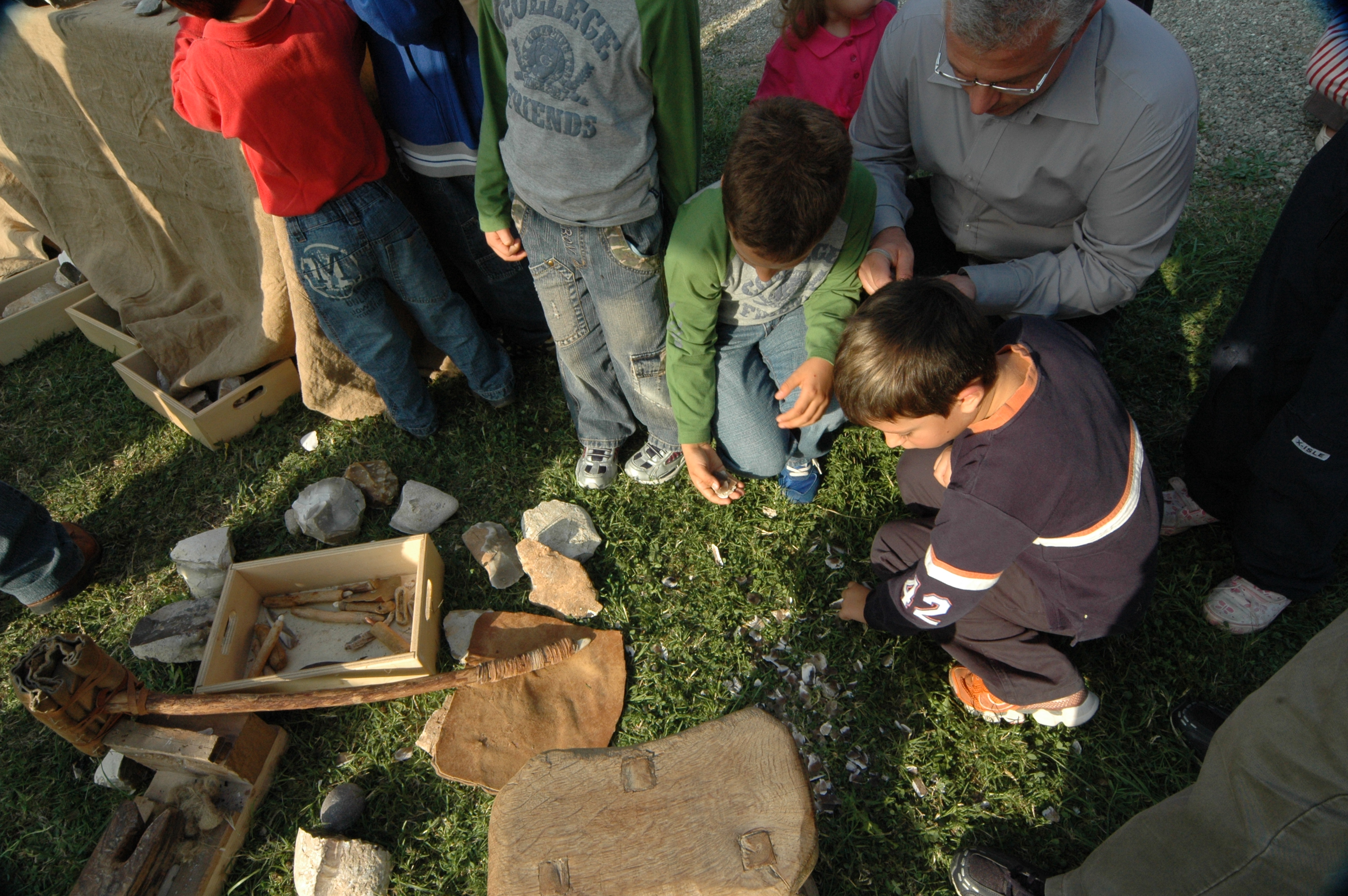 A bambini e ragazzi, sarà sempre Nicola Dal Santo a insegnare come realizzare vere e proprie frecce con rami in nocciolo per l’asta, punte in selce, fibre vegetali per la legatura e la colla “preistorica” a base di resina naturale.