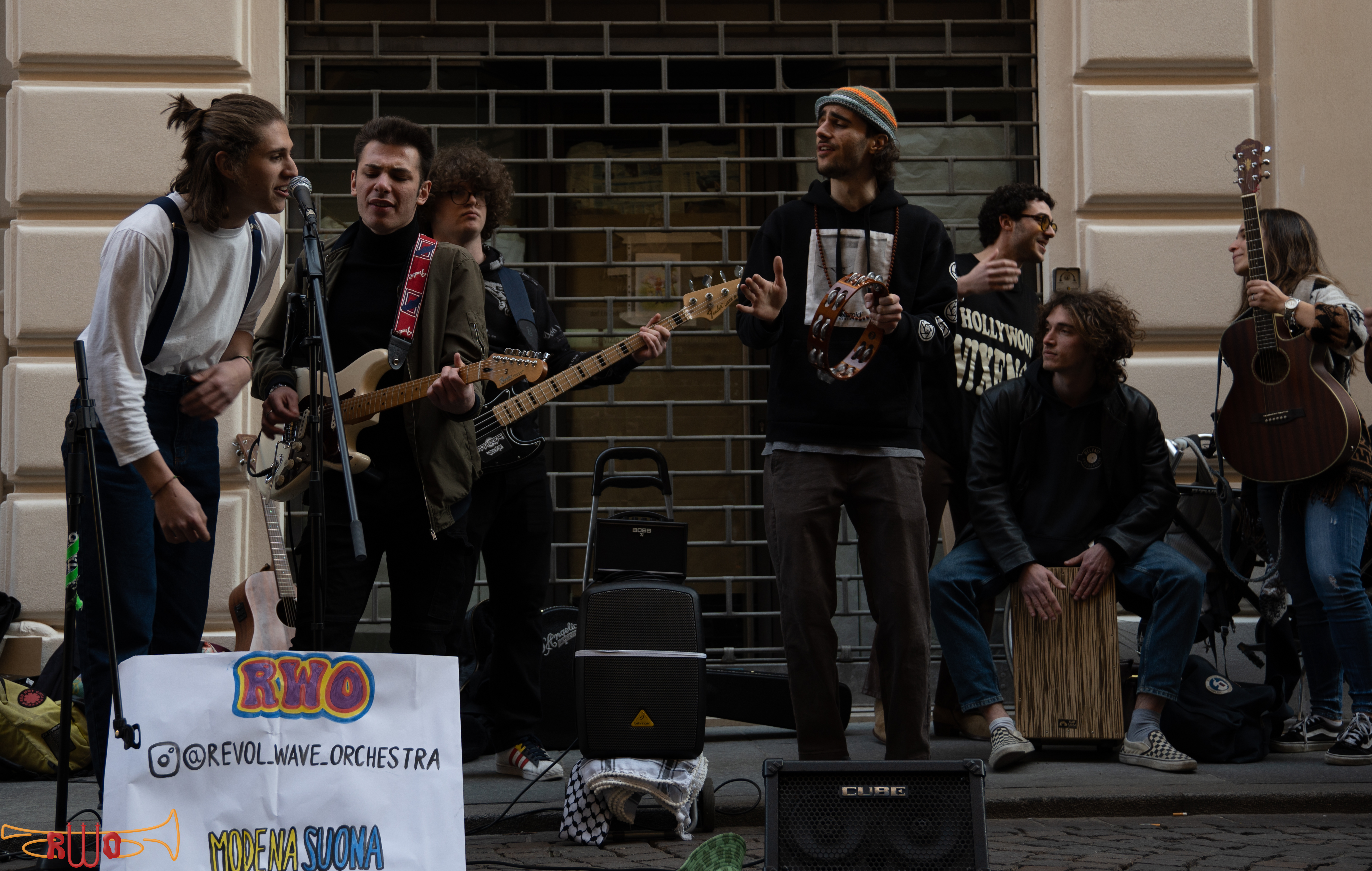 Il “Wave experience festival”, che è giunto alla terza edizione e ha il sostegno del Comune di Modena, inaugura il programma estivo della Revol Wave Orchestra il collettivo che riunisce circa 400 tra musicisti e artisti locali. Il gruppo è nato nel 2021, da una chat di 12 iscritti che avevano l’obiettivo di sostenersi a vicenda tra band emergenti condividendo strumentazioni e pubblicità degli eventi live. In poco tempo, grazie ai concerti e alle esibizioni per strada, molti altri musicisti sono entrati nel gruppo che a fine dicembre 2022 ha raggiunto i 300 iscritti, cresciuti oggi fino a quattrocento. Il gruppo offre ai propri componenti la possibilità di suonare ed esibirsi davanti a un pubblico, con musicisti sempre nuovi con le “Revol jam”, all’insegna dell’improvvisazione ogni ultimo mercoledì del mese al Centrale66; i “Revol day”, il ritrovo per conoscersi e suonare insieme ogni ultima domenica del mese nella sala del Centro sociale anziani e orti Buon Pastore o nella sala prove Wave music alla polisportiva Morane. Il gruppo lavora anche in diversi locali e collabora con altre realtà musicali e artistiche cittadine.