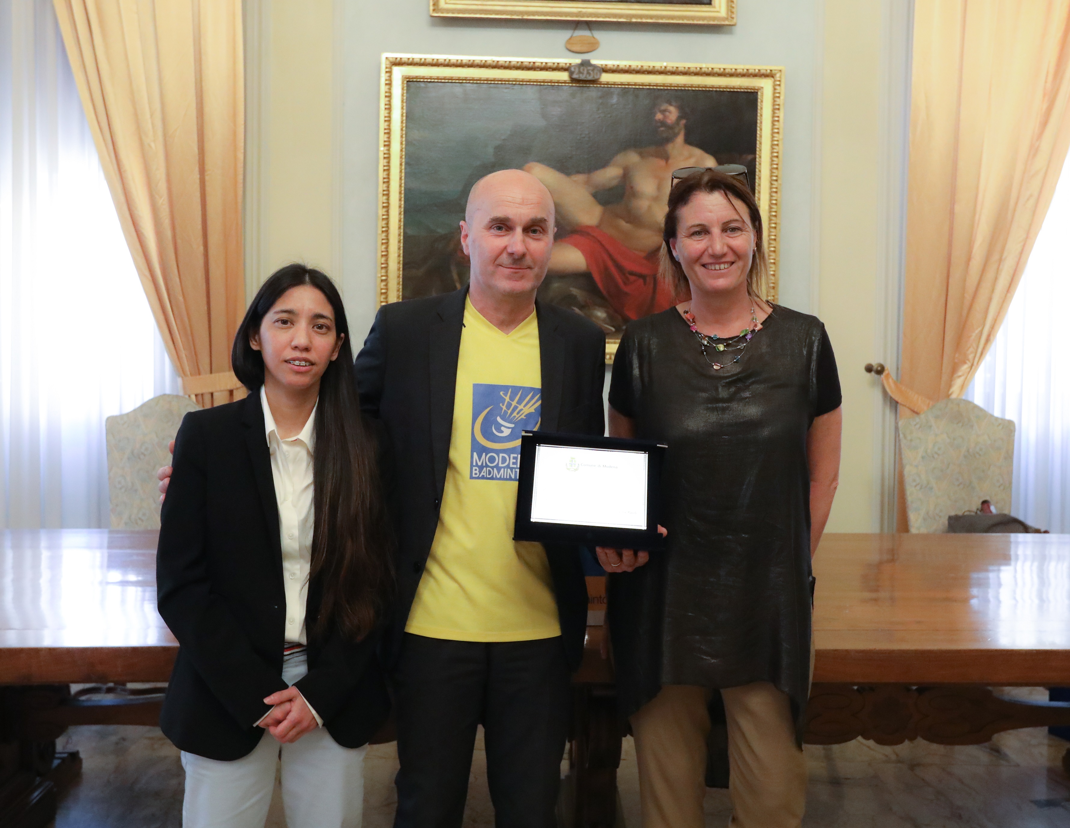Al termine dell’incontro l’assessora ha donato alla società sportiva una targa su cui è riportata una frase di Nelson Mandela: “Lo sport ha il potere di cambiare il mondo. Ha il potere di ispirare. Esso ha il potere di unire le persone in un modo che poche altre cose fanno. Parla ai giovani in una lingua che comprendono. Lo sport può portare speranza dove una volta c’era solo disperazione”. Mentre Modena Badminton ha regalato all’Amministrazione comunale il volano – cioè la pallina che viene utilizzata per giocare nel badminton – utilizzato nello scambio finale della partita dei playoff di serie B che ha certificato la promozione in A della compagine modenese.
