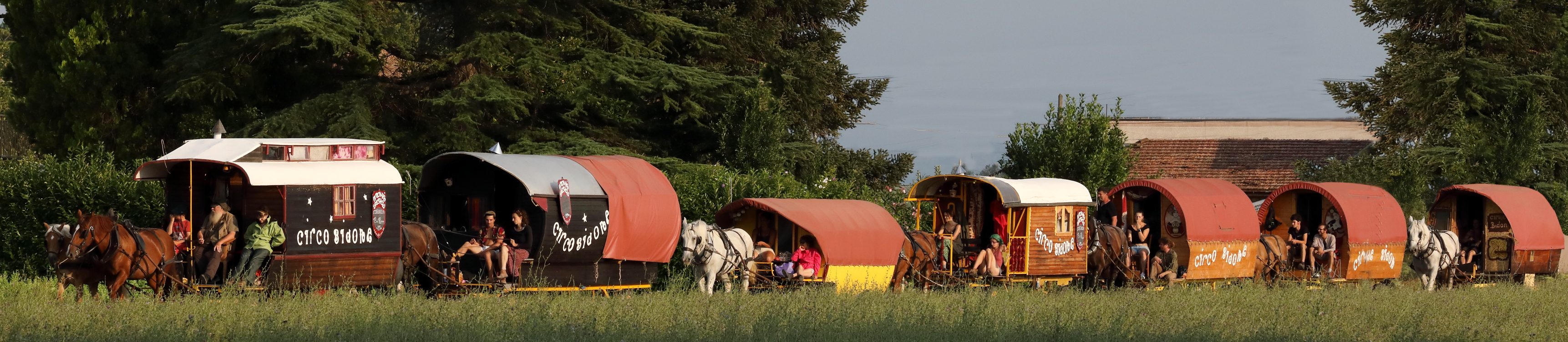 Il Cirque Bidon ha fatto della vita a contatto con la natura, della mobilità dolce e dell’arte come fatto comunitario la propria filosofia e pratica artistica. Un esempio di questo approccio sono le splendide carrozze in legno, costruite a mano e trainate da cavalli che vengono usate per il trasporto delle scene e della compagnia e che diventano alloggio per gli artisti e i tecnici. Le carrozze diventano anche scenografia per lo spettacolo, una delle caratteristiche della proposta artistica del Cirque Bidon, infatti, è la capacità di integrarsi con lo spazio pubblico mettendosi in contatto diretto e in dialogo poetico con l’ambiente circostante e con le comunità residenti.
