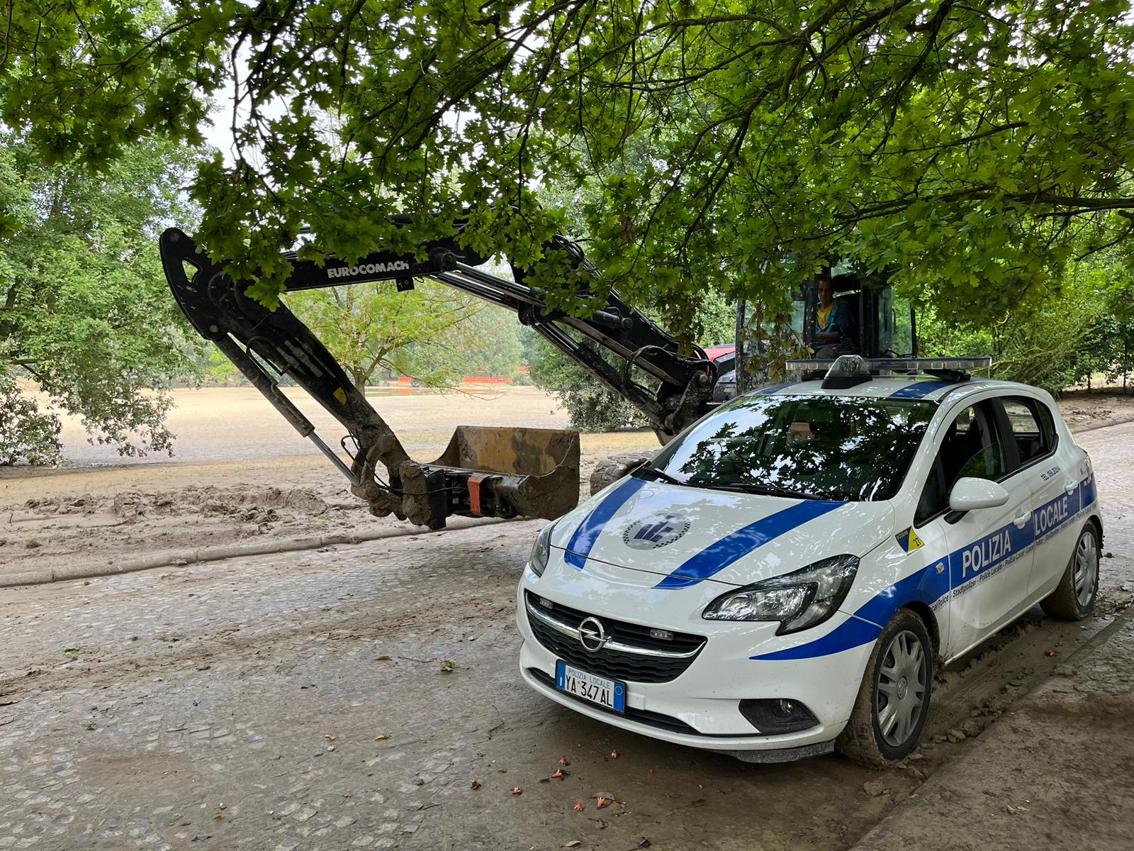 Prosegue l’attività della Polizia locale di Modena nelle terre della Romagna flagellate dal maltempo. Dopo il servizio prestato a Savignano sul Rubicone nelle due settimane immediatamente successive l’esondazione, che hanno visto gli operatori portare aiuti alle famiglie rimaste isolate a causa di frane e dissesti o accompagnarle in luoghi più sicuri, altre tre pattuglie della Polizia locale di Modena sono partite il 27 maggio per la Romagna, questa volta verso il territorio comunale della città di Forlì, dove la gran quantità di fango lasciata dall’acqua, causa l’allagamento di interi quartieri quando piove, poiché le caditoie della rete fognaria sono ancora intasate dal fango.
