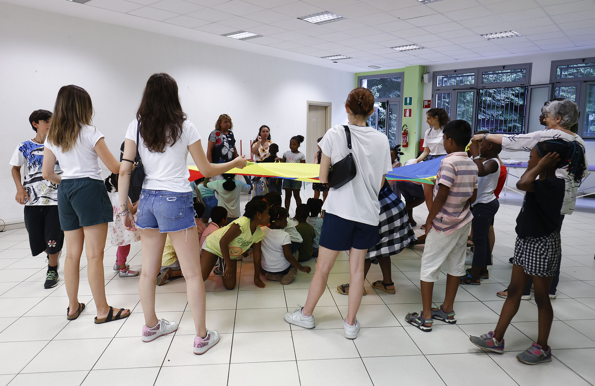 Le attività estive si svolgono tutte le mattine negli ampi locali che la parrocchia mette gratuitamente a disposizione, corredati da campi da calcio e da basket, tavolo da ping pong, bigliardino e spazi liberi per il gioco; sono iniziate il 19 giugno e proseguiranno per tutta estate, fino al 31 agosto. A frequentarle sono 130 bambini del quartiere, hanno dai 3 ai 14 anni di età e sono assistiti da 50 “maestrini”, studenti delle scuole superiori che hanno tra i 16 e i 19 anni. Anche con il loro aiuto i bambini svolgono i compiti dalle 10.30 alle 11.30 per dedicarsi poi al gioco dopo un’abbondante merenda. Dello staff fa parte anche un ragazzo più grande con disturbo dello spettro autistico, Michele, “referente all’accoglienza e alla gentilezza” come lo definisce la professoressa Fella che ogni mattina coordina le attività insieme ad alcune collaboratrici saltuarie.