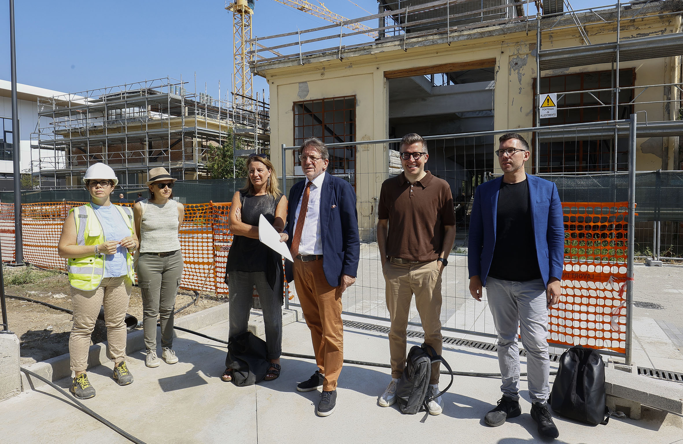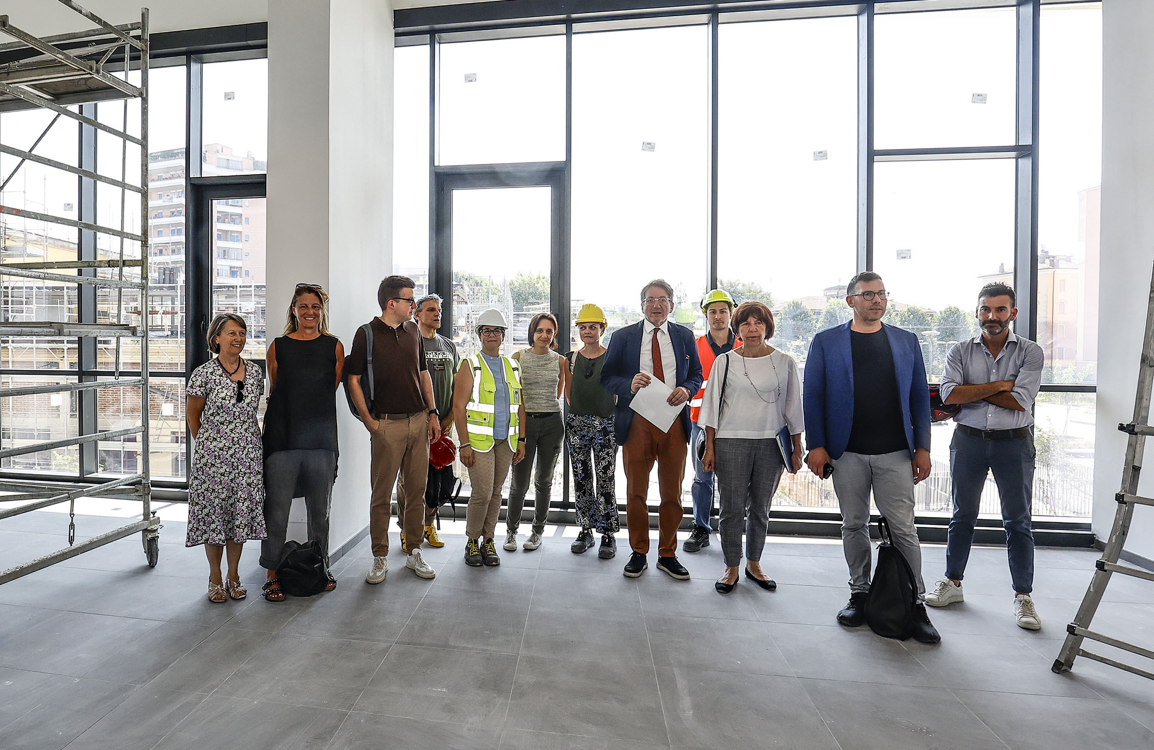 La verifica sullo stato di avanzamento dei lavori del Parco della Creatività, nel comparto dell’ex Amcm tra le vie Buon Pastore, Sigonio e Peretti, si è svolta questa mattina, martedì 11 luglio, nel corso di un sopralluogo con il sindaco Gian Carlo Muzzarelli, gli assessori Andrea Bosi (Lavori Pubblici), Grazia Baracchi (Sport e Istruzione), Andrea Bortolamasi (Cultura), la direttrice generale del Comune Valeria Meloncelli, insieme a tecnici comunali e della società di progetto Parco Creatività spa, costituita dagli operatori economici del Raggruppamento temporaneo d’impresa selezionato attraverso la procedura competitiva con negoziazione.