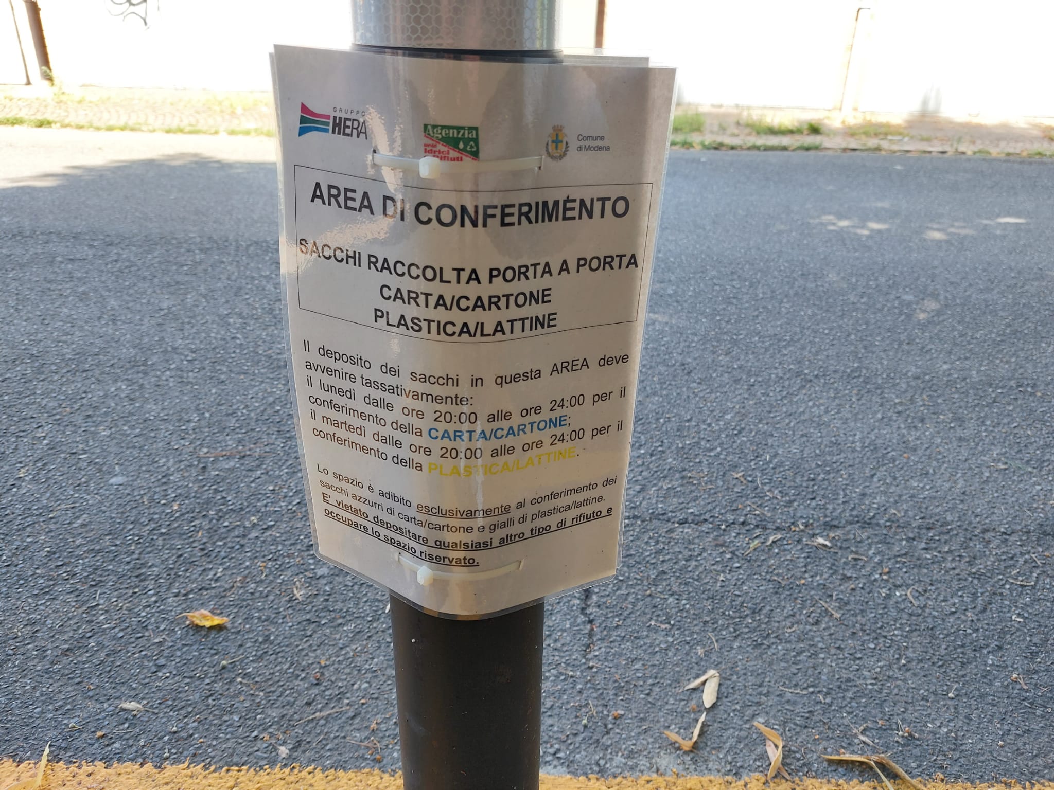 Le nuove aree di esposizione dei sacchi gialli e blu sono state realizzate da Hera in accordo con il Comune di Modena per facilitare una gestione ordinata della raccolta differenziata domiciliare dei rifiuti conciliandola con la piena fruibilità degli spazi pubblici.