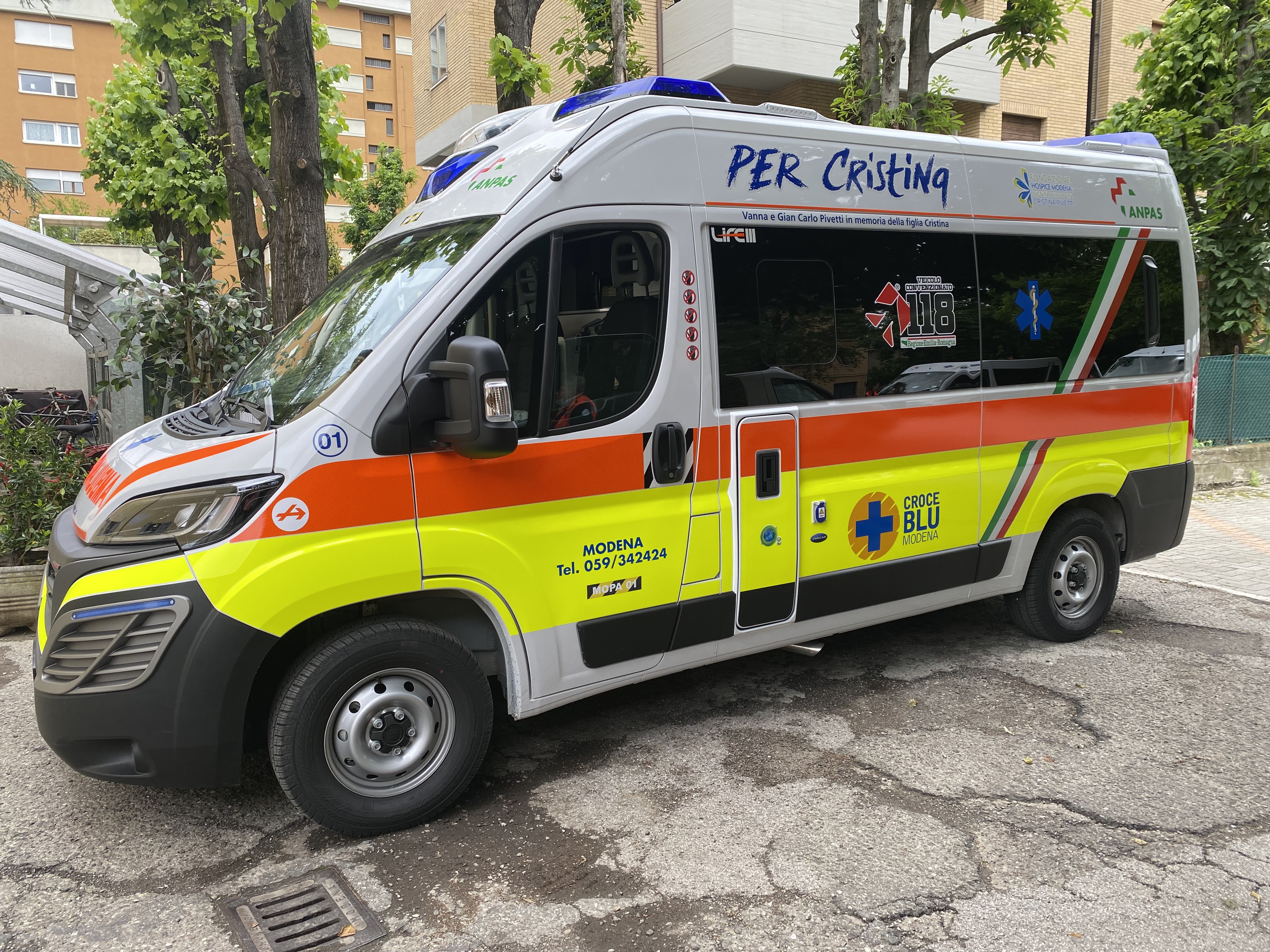 Il nuovo mezzo, che accanto alla dedica “Per Cristina” riporta anche il logo della Fondazione Hospice Modena Cristina Pivetti, è utilizzato per il servizio di emergenza-urgenza coordinato dalla centrale operativa del 118. Grazie a questo veicolo, la flotta dell’associazione con sede in via Giardini 481 sale a 25 tra pulmini, ambulanze e automobili che tutti i giorni dalle 6.30 del mattino alle 24 supportano i cittadini nelle attività di trasporto dialisi, dimissioni, emergenza urgenza, pasti, farmaci, protezione civile. Approfondimenti online sul sito www.croceblumodena.org.